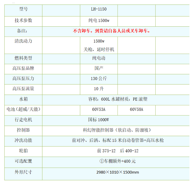 价格¥16500.00 /辆除新疆、西藏外含税含运费