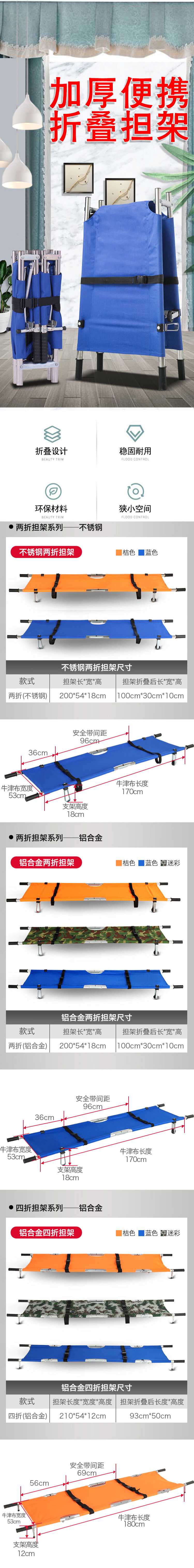 海斯迪克 折叠担架 KA68-5 蓝色镀锌铁加厚两折(150公斤) 1个