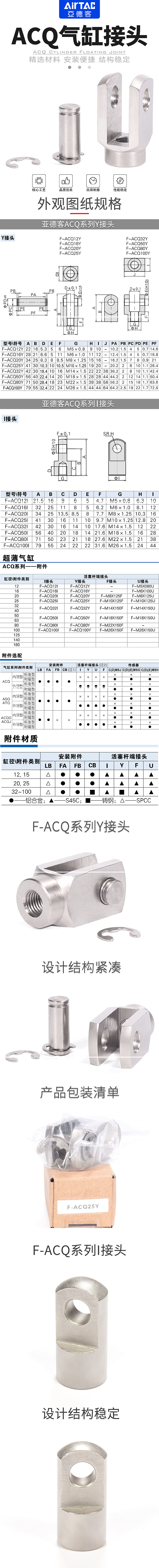 亚德客 Y型接头 F-ACQ20Y 适用于同品牌ACQ20系列气缸 1个