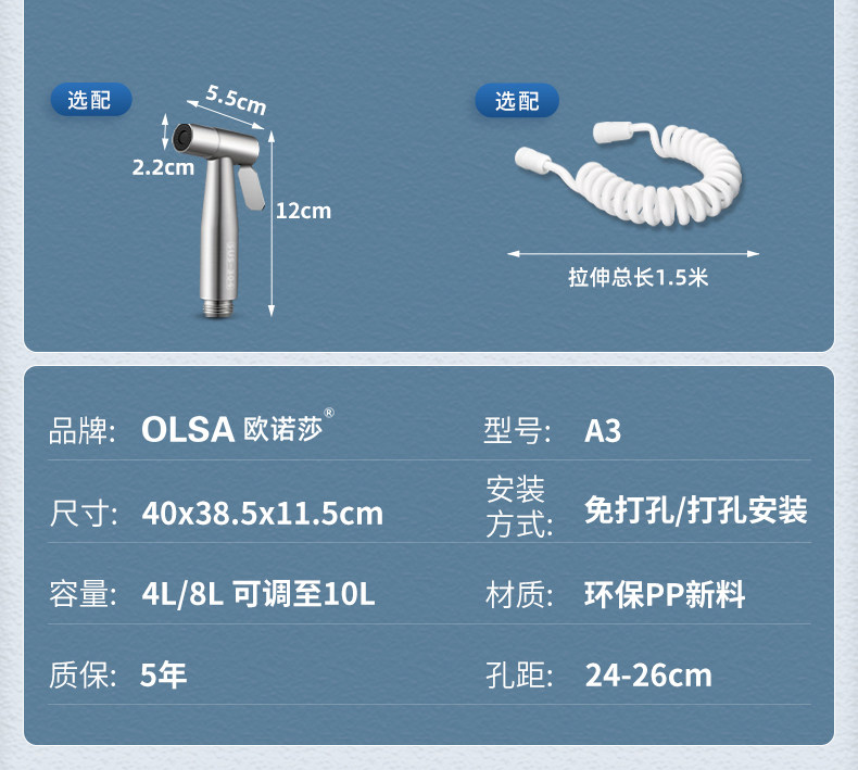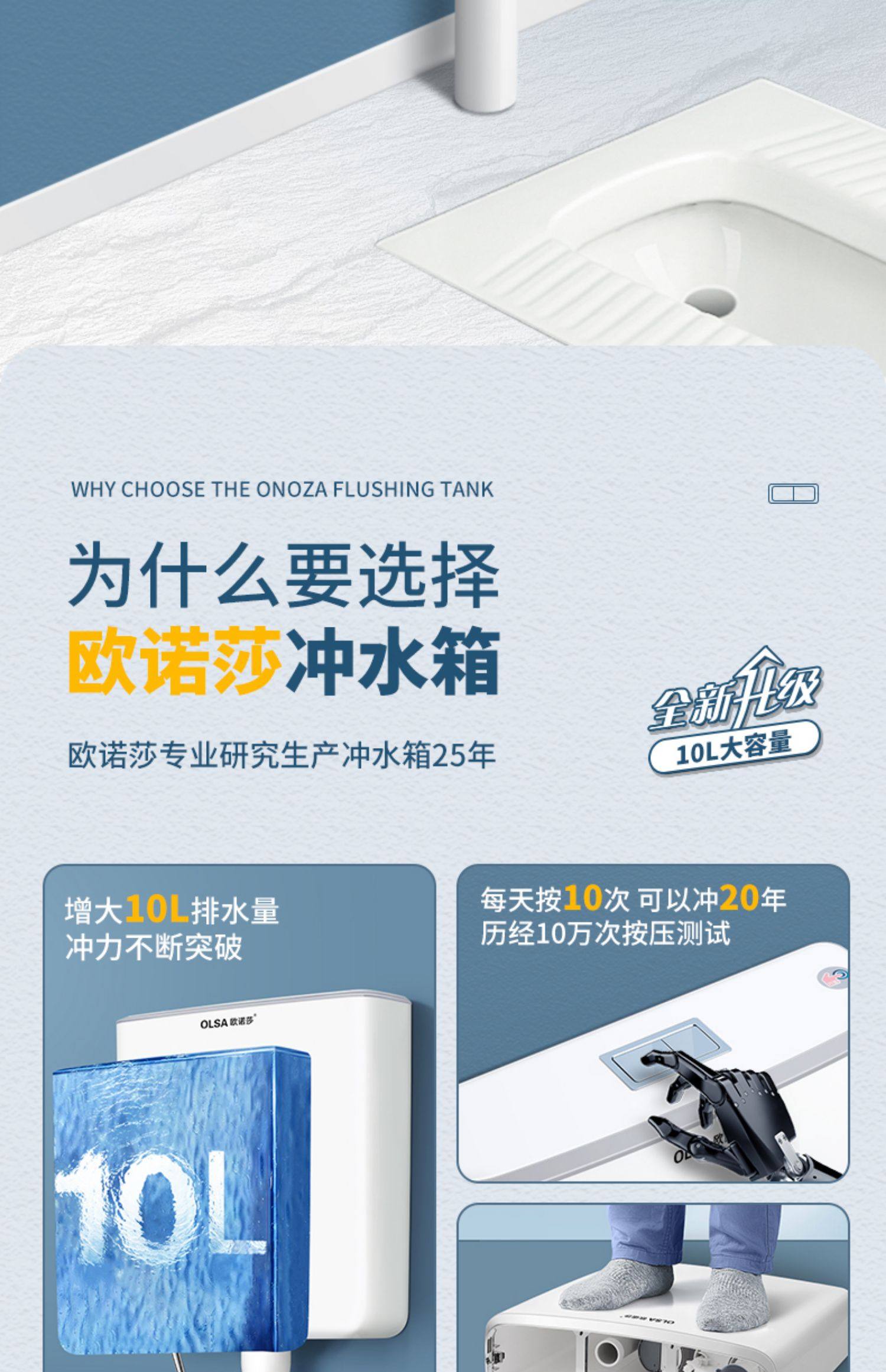 欧诺莎 蹲便器水箱 A3 10L大容量 1个