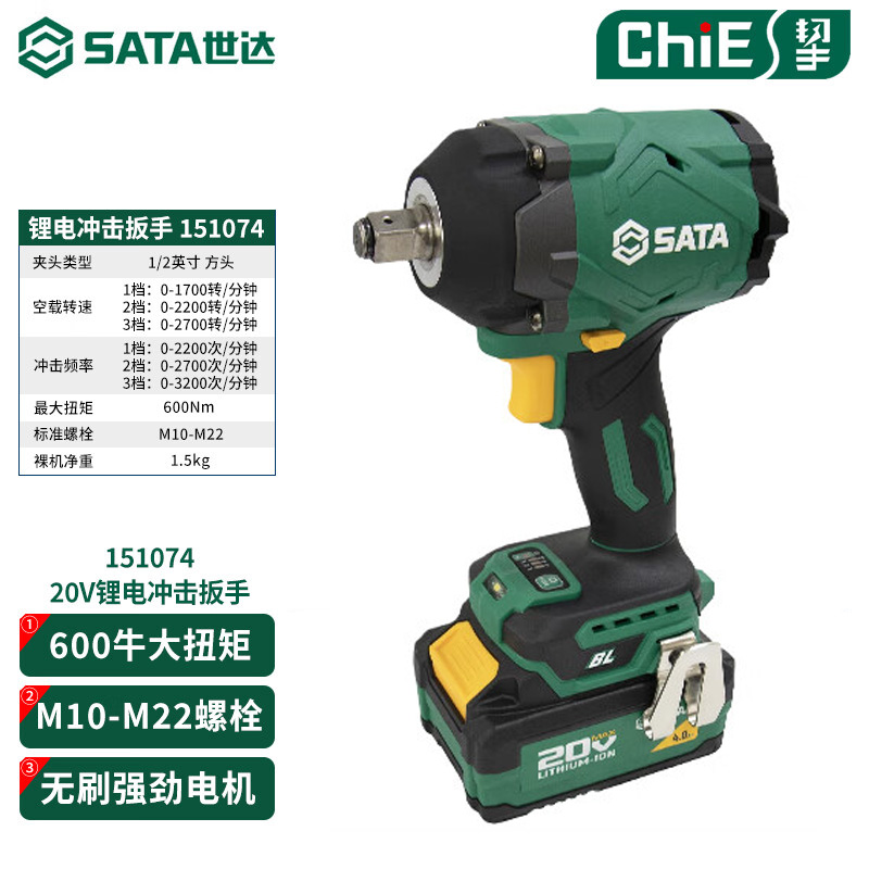世达 锂电无刷冲击扳手 151074 ChiE系列 20V 二电一充 600N·m 1台