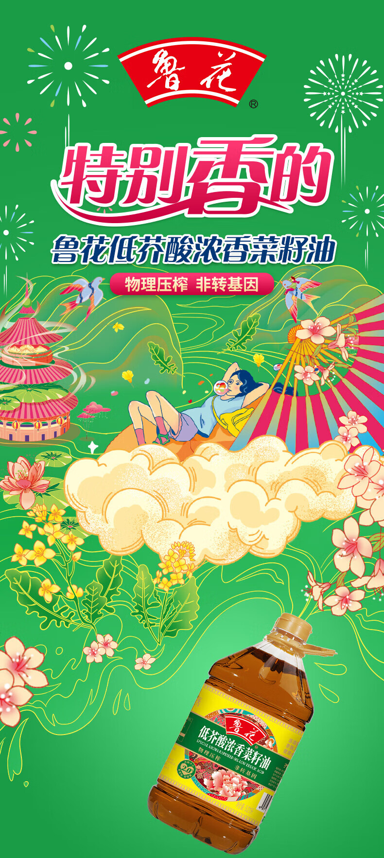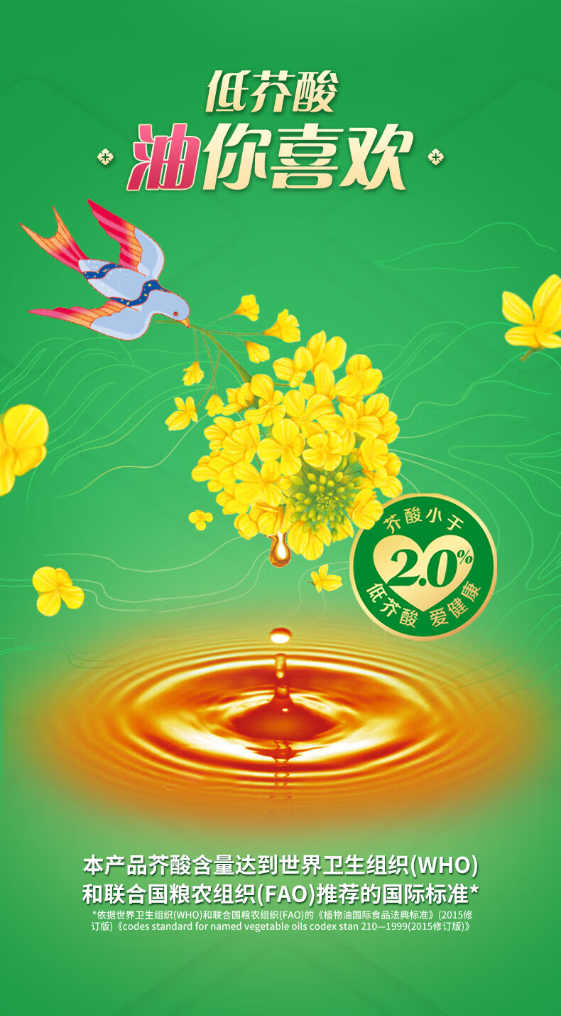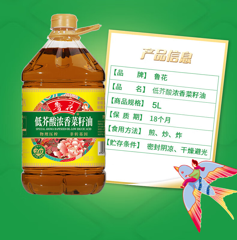 鲁花 香味家族低芥酸浓香菜籽油 5L 1桶