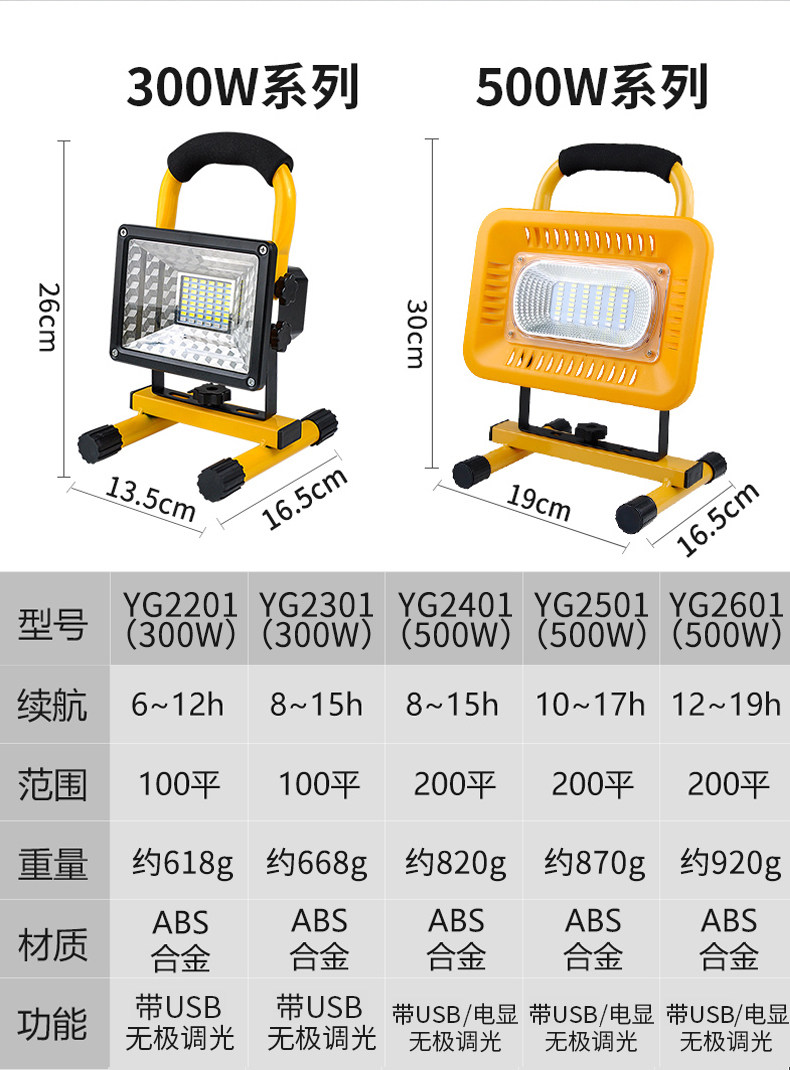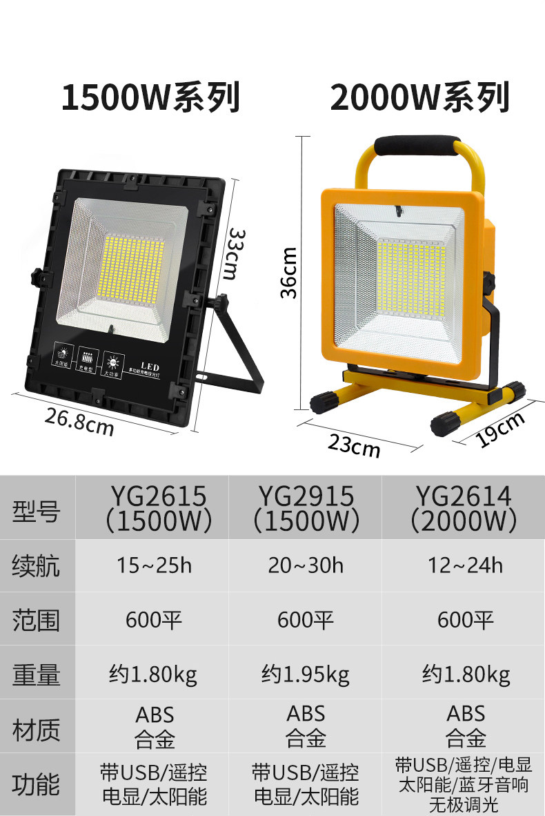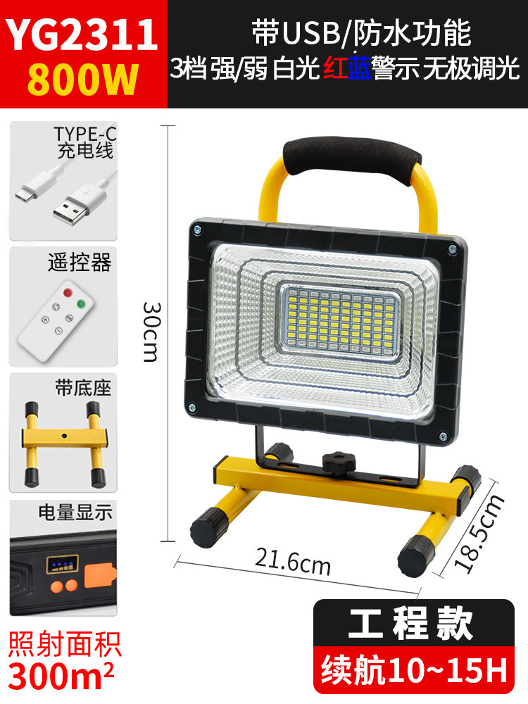 800W 工程款(容量升级)+遥控/续航12-18h泛光300平