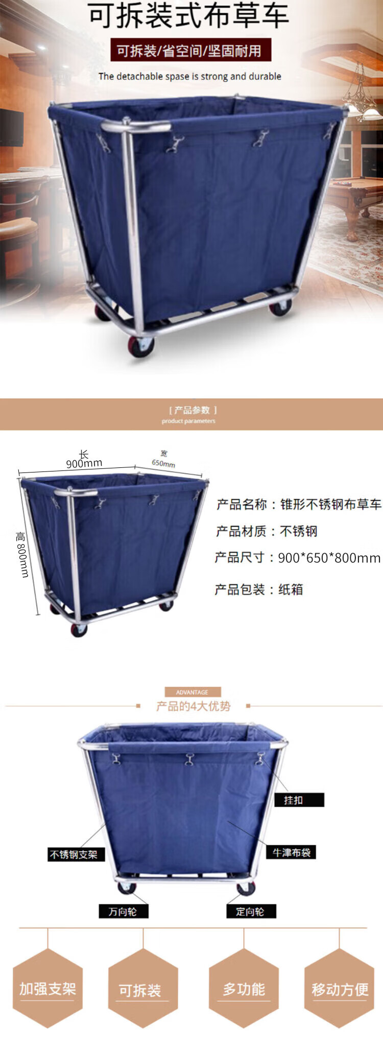 海斯迪克 布草车客房服务车 KQ169-1 90*65*80cm 蓝色拆扣款 1个