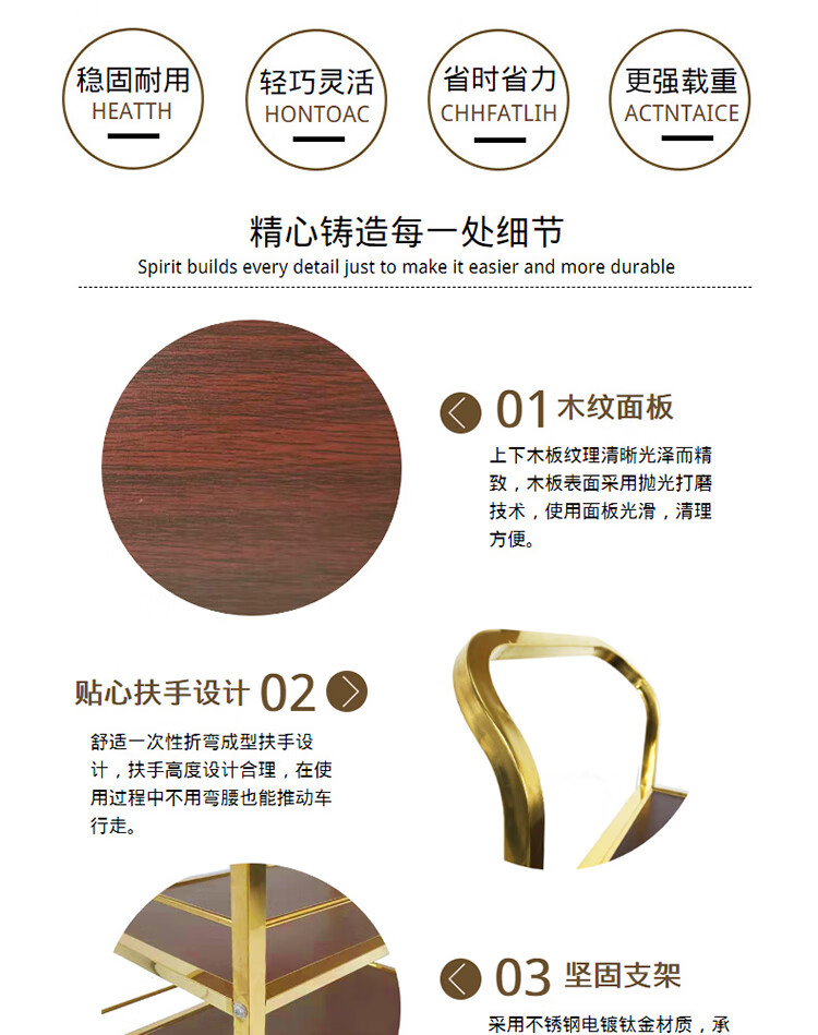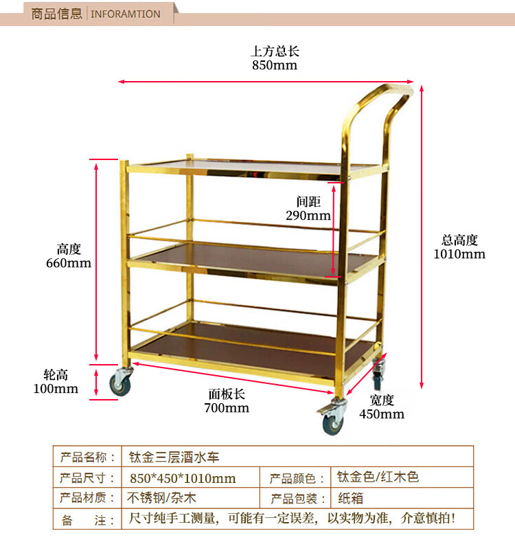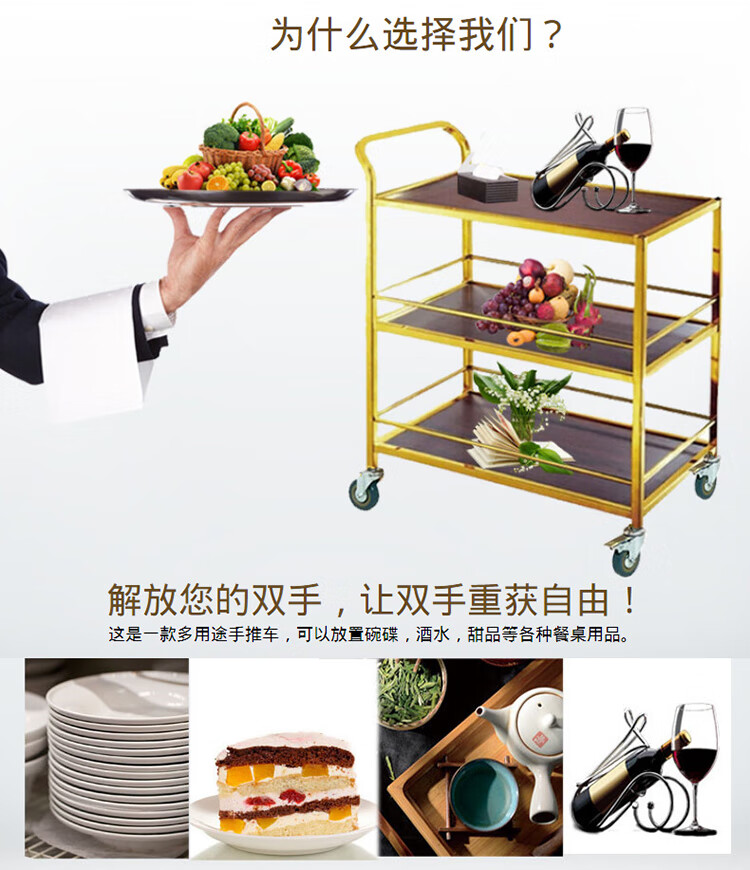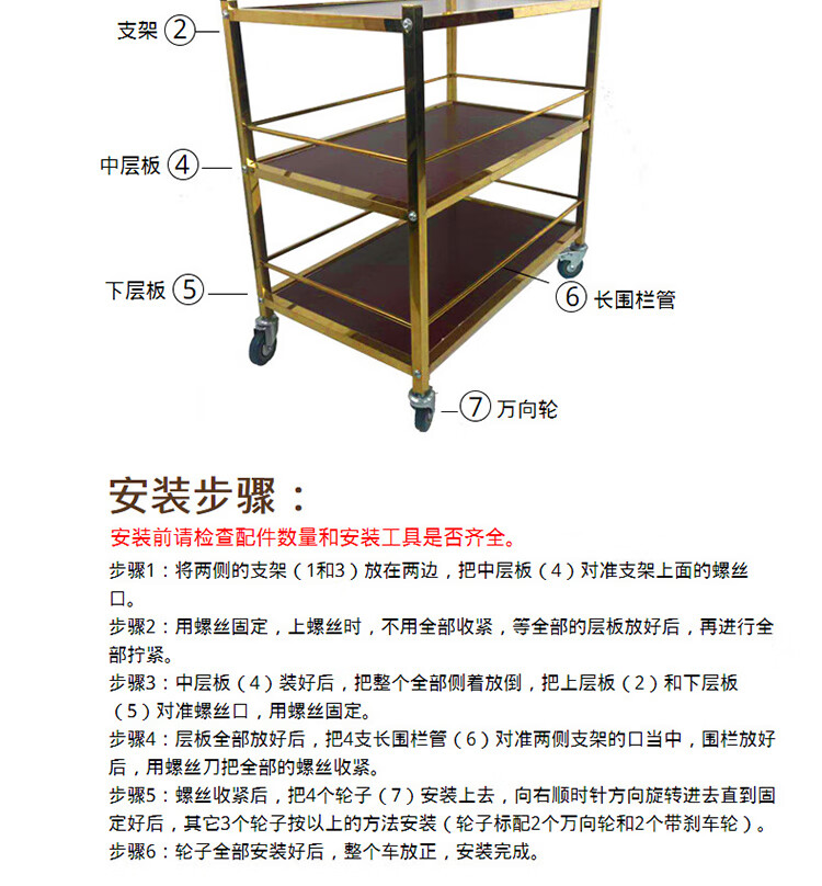 海斯迪克 三层小推车 KQ169-5 87*45*402cm 金色可拆装 1个