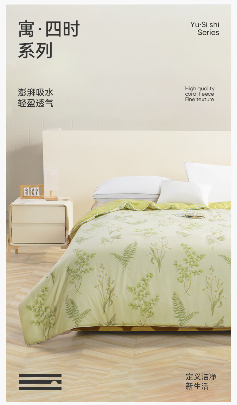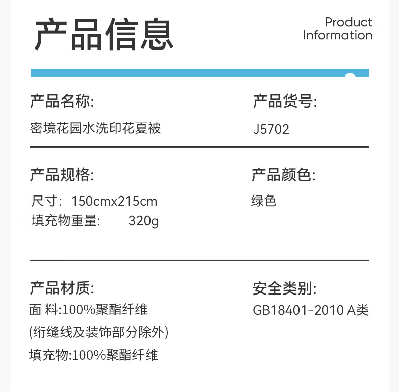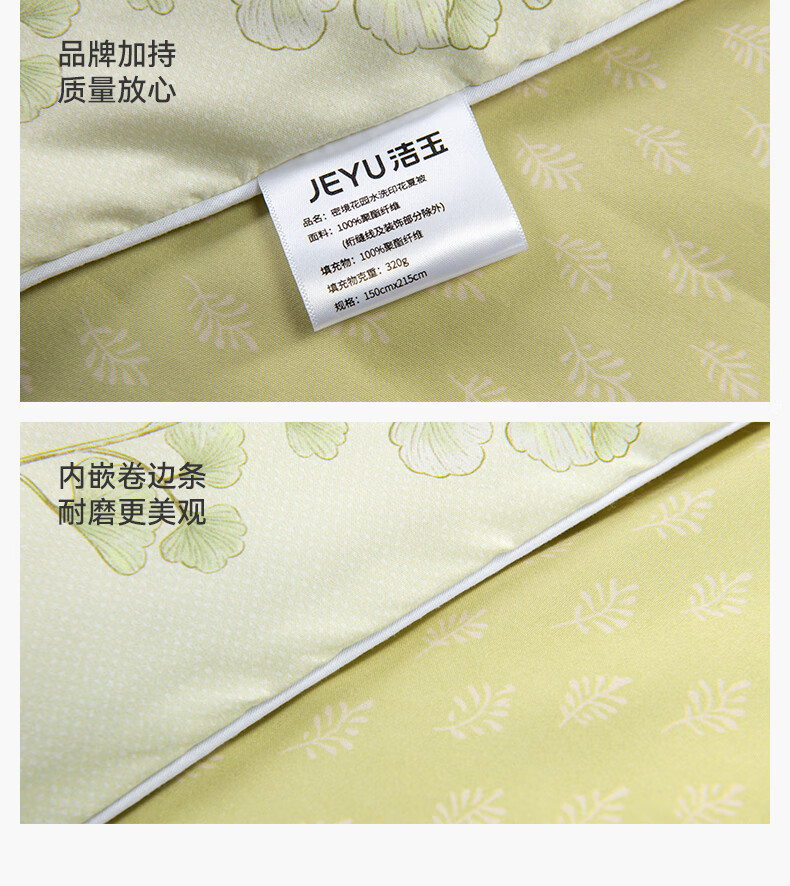 洁玉 寓·四时系列密境花园水洗印花夏被 J5702 绿 150cm×215cm 1件