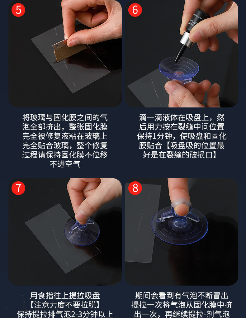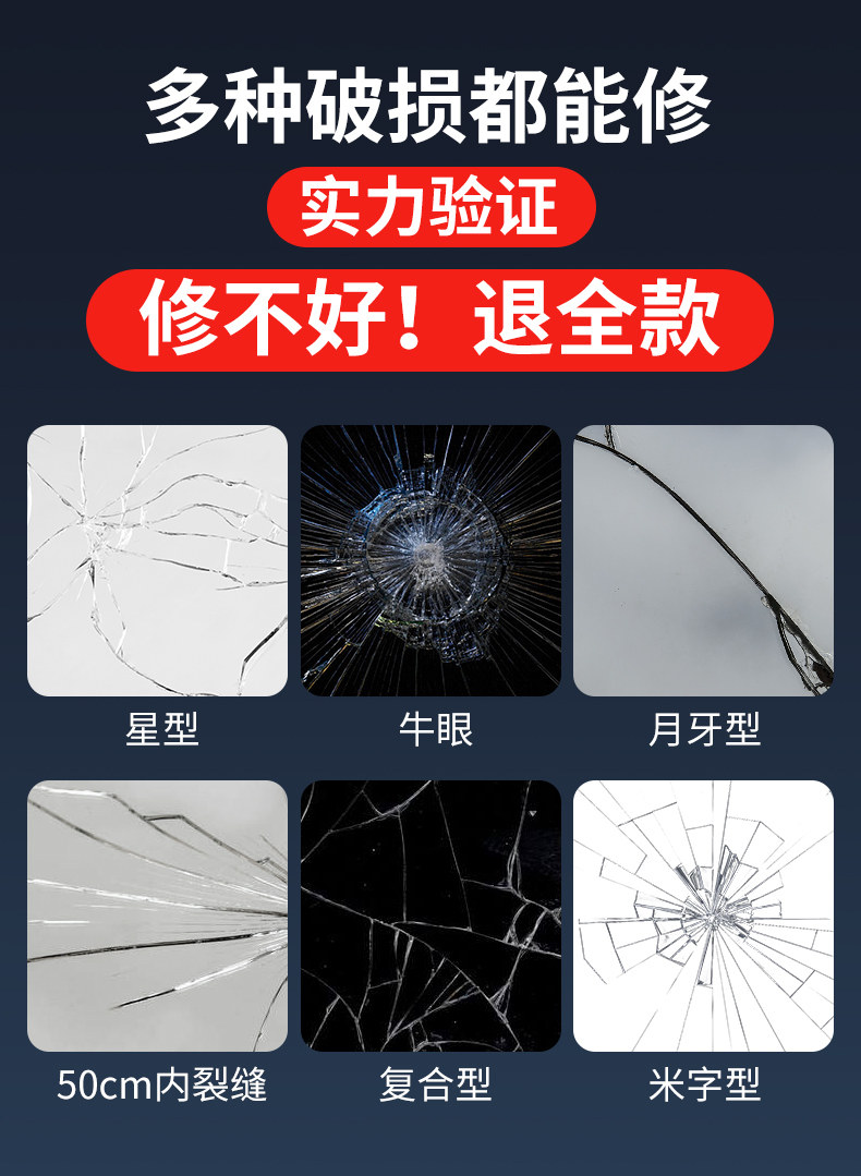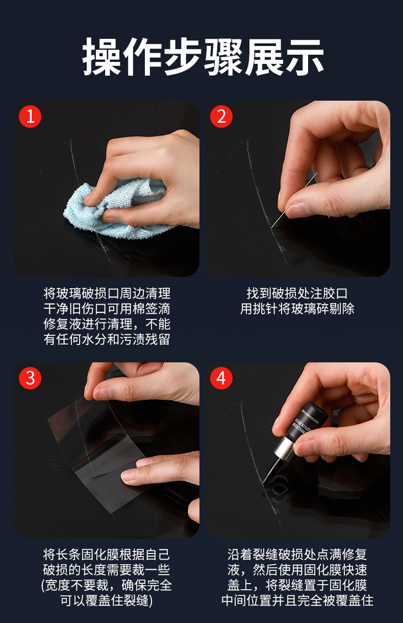 国产通用 玻璃修复液 牛眼修复5瓶+工具 1组