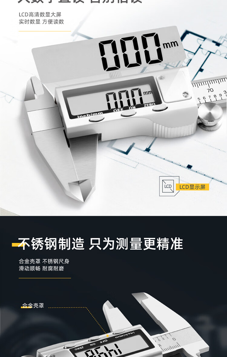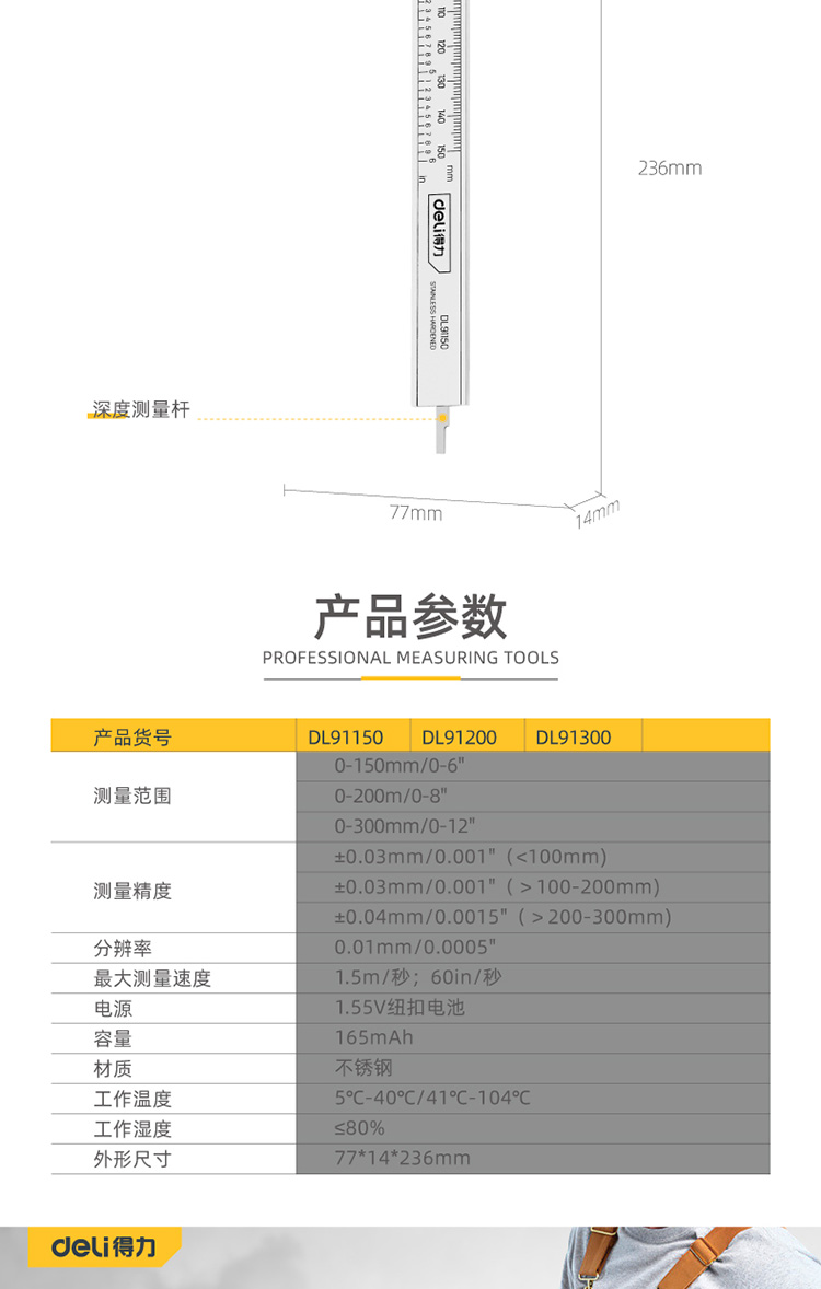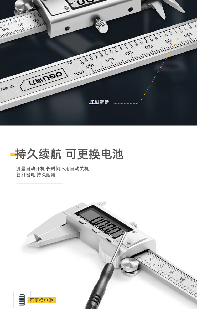 得力 数显卡尺 DL91300B 0-300mm 银色 1把