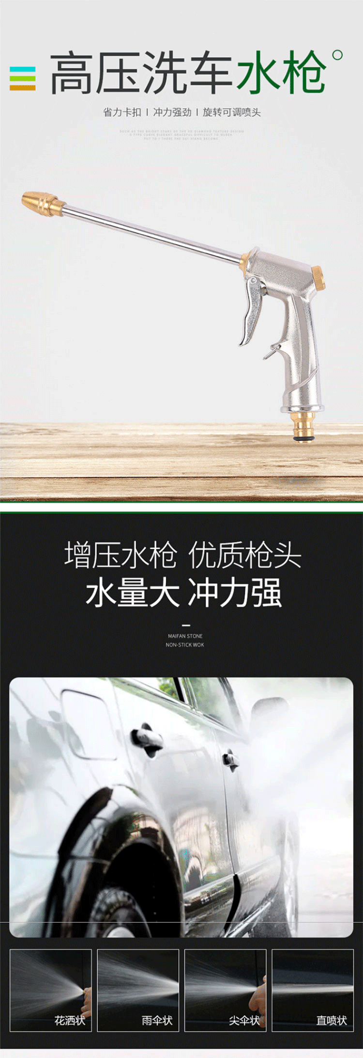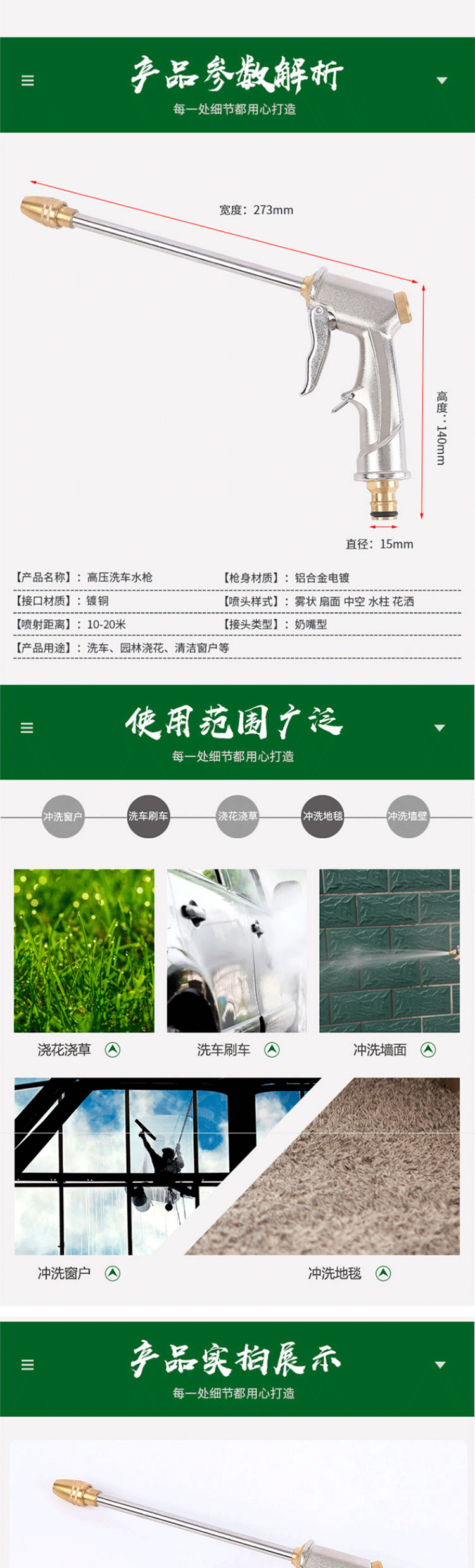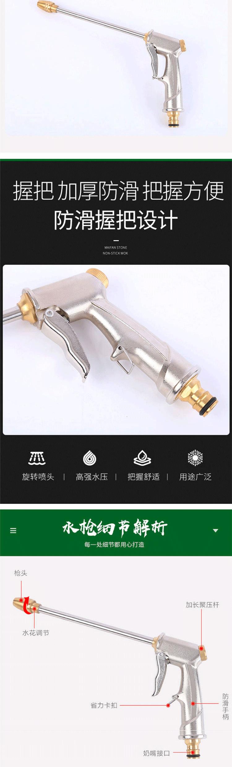 海斯迪克 锌合金高压洗车水枪头 KQ186-2 273*140mm 1个