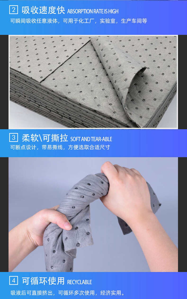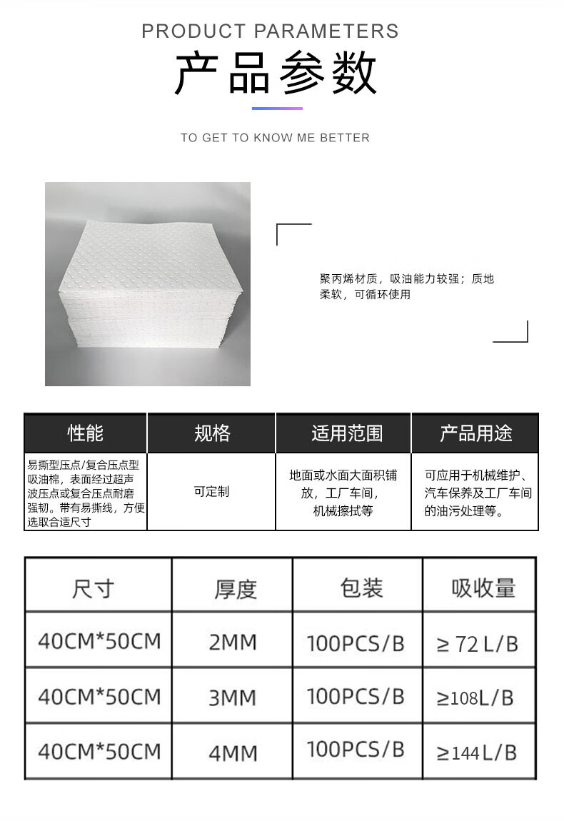 海斯迪克 工业吸油棉 KQ194-9 40cm*50cm*4mm 白色 100片 1件