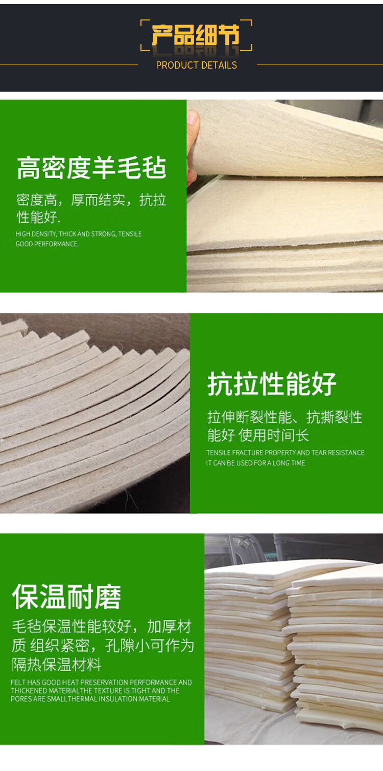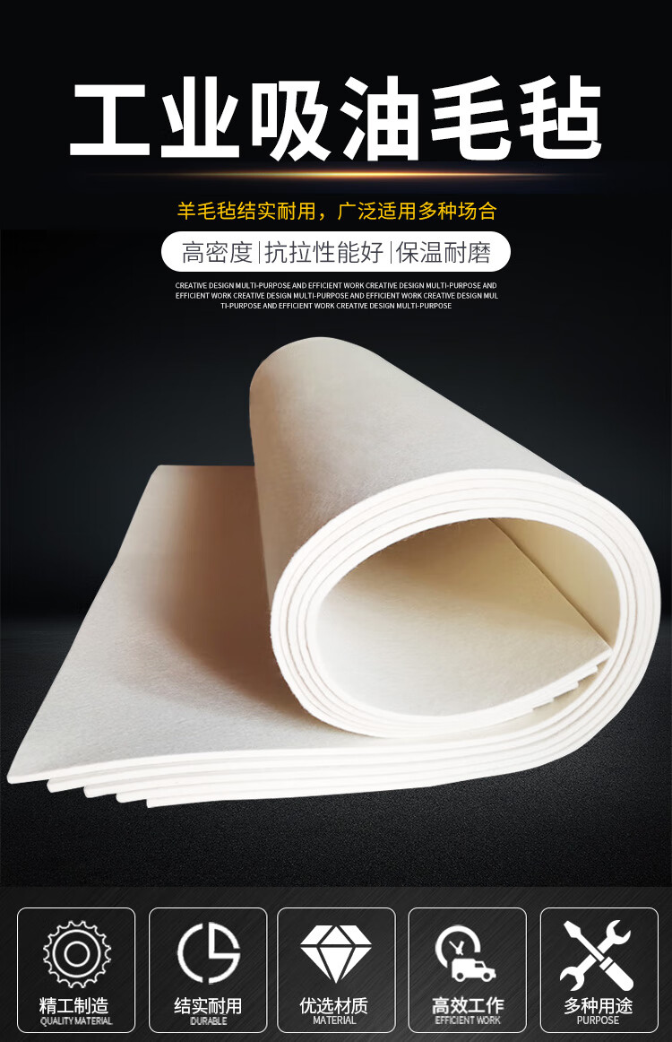 海斯迪克 工业清洁吸油羊毛毡 KQ196-1 500*500*5mm 白色 1片
