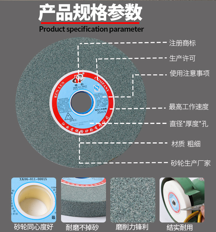 琨轮 小孔砂轮片 GC80L 125x16x12.7mm 绿碳化硅 细磨型 1个