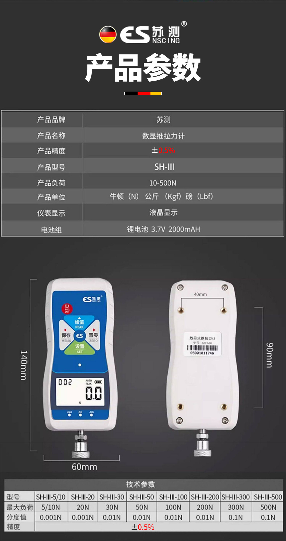 苏测 拉力测试仪 数显SH-II-300N-牛顿(公斤-30kg) 1个