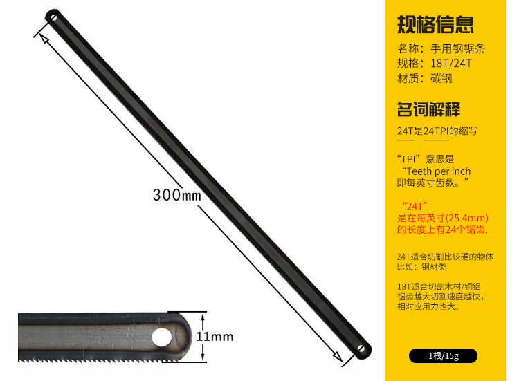 海斯迪克 手用钢锯条 KK68 300mm 10个 1包