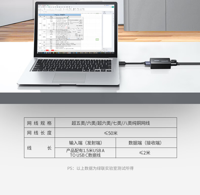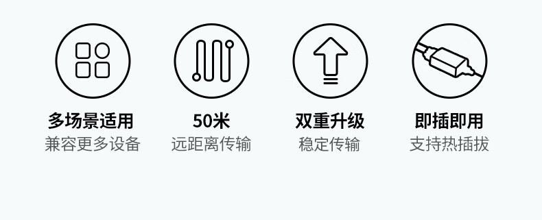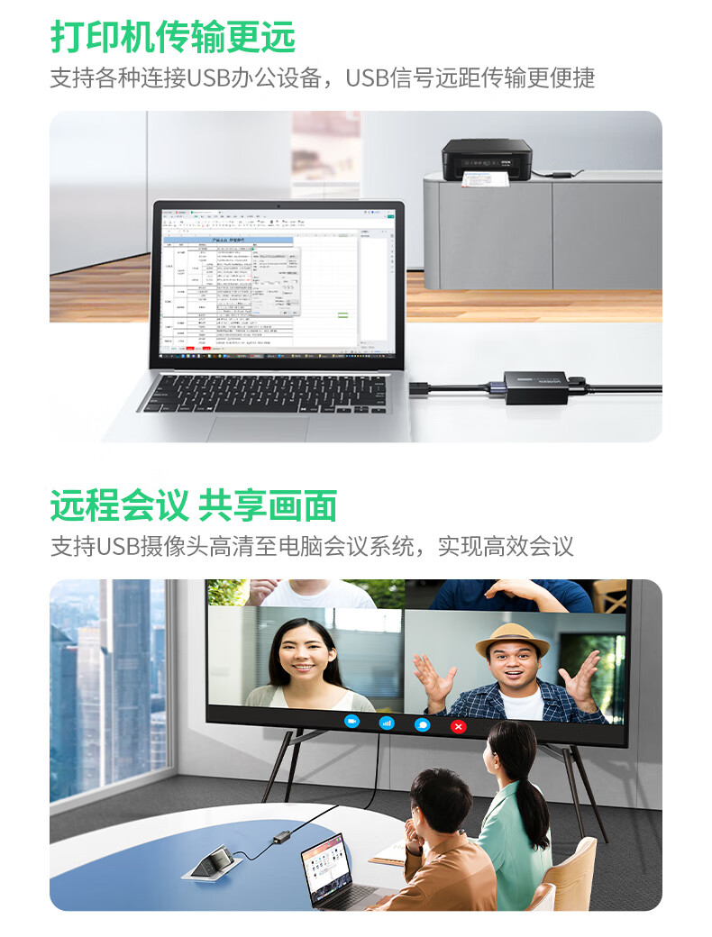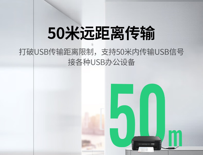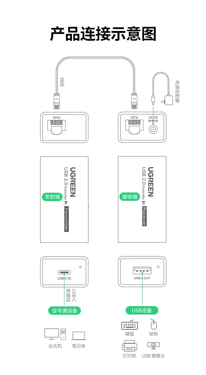 绿联 USB2.0单网线延长器胶壳 CM750/35145 带DC电源 50米 1对