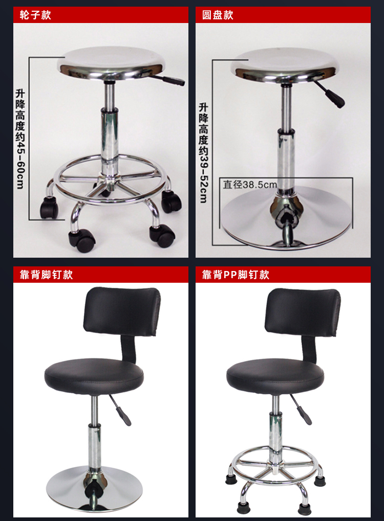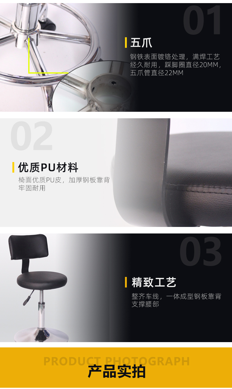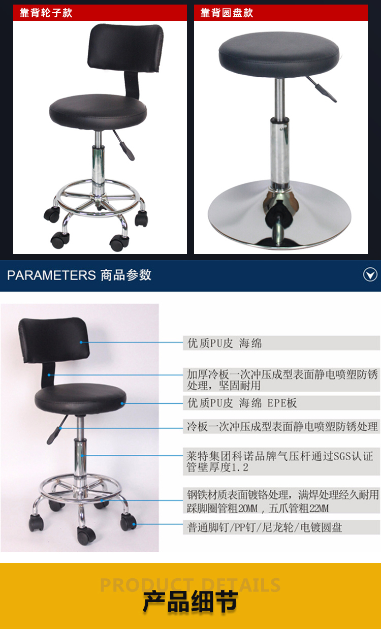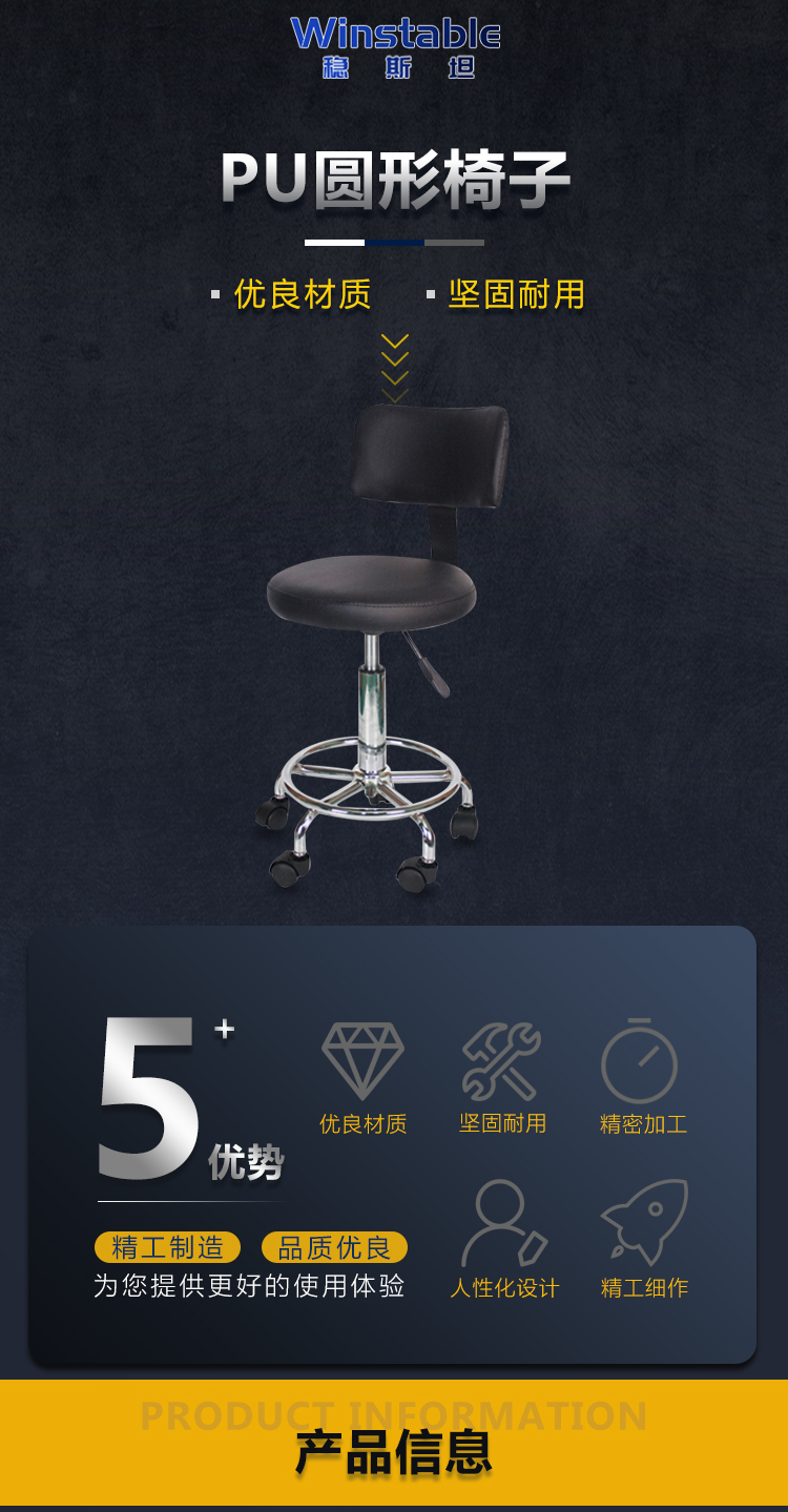 稳斯坦 员工凳 WST210 靠背PP钉款-黑色 1个