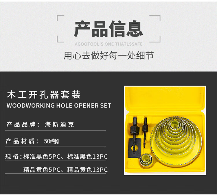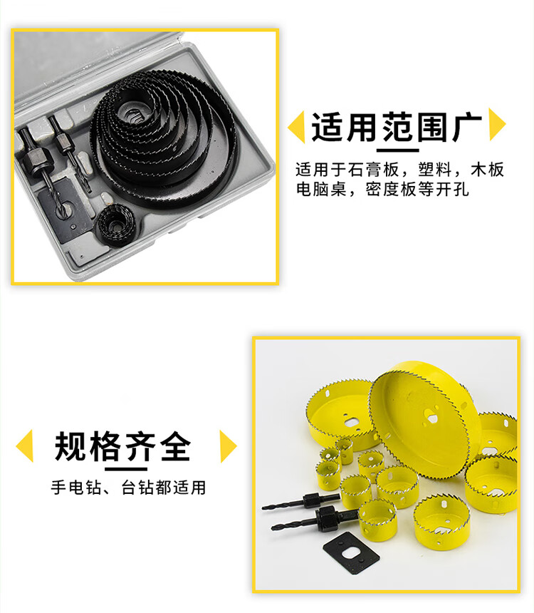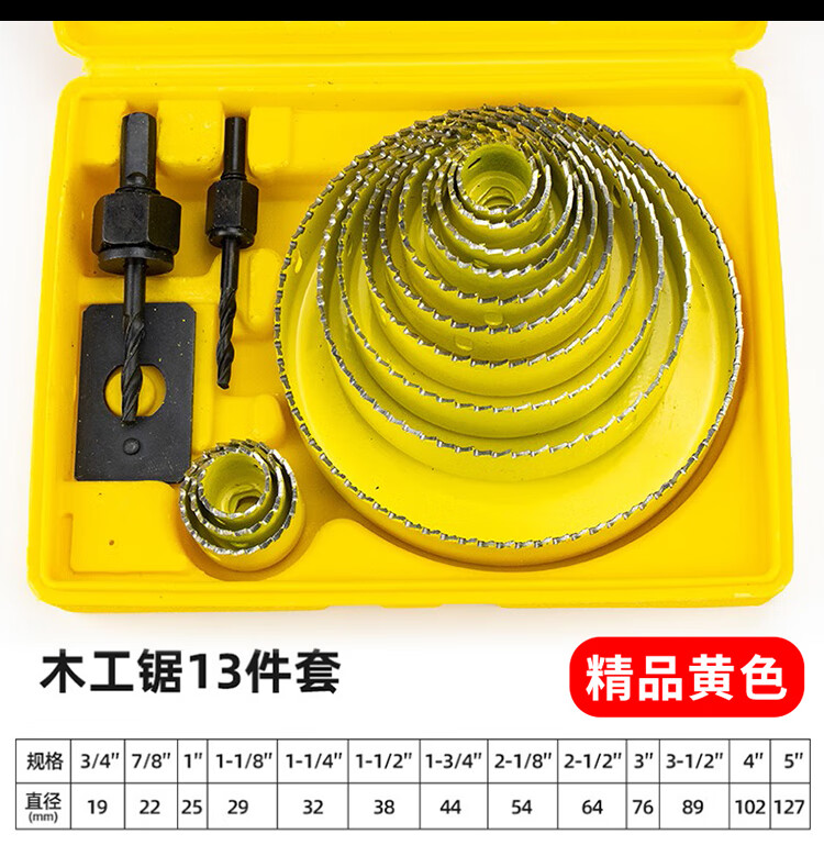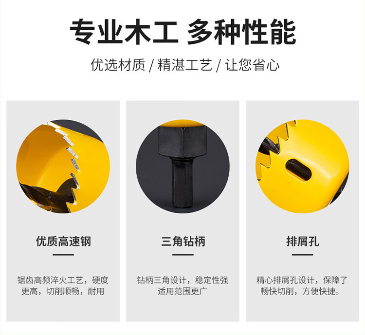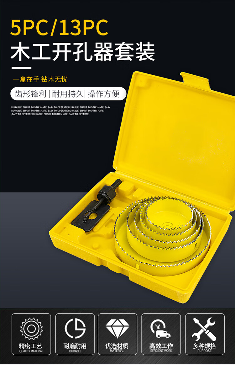 海斯迪克 工业级木工开孔器套装 KK113-3 精品黄色5pc 1套