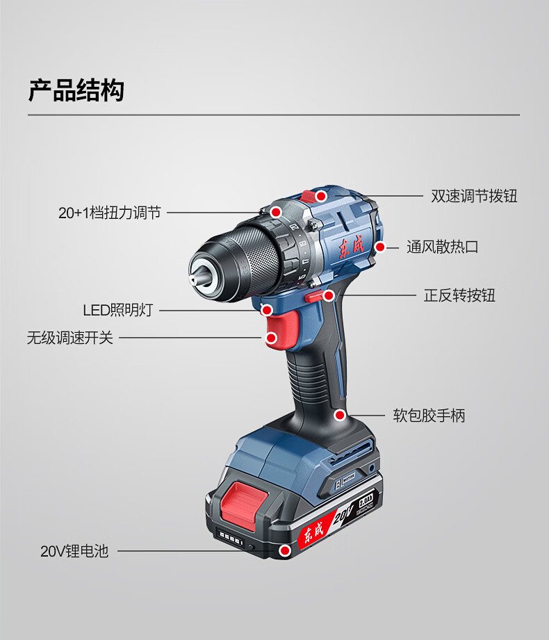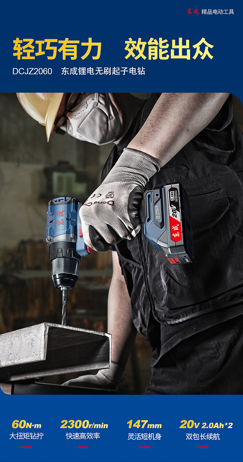 东成 充电式锂电冲击钻 DCJZ2060Z 20V 裸机 1套