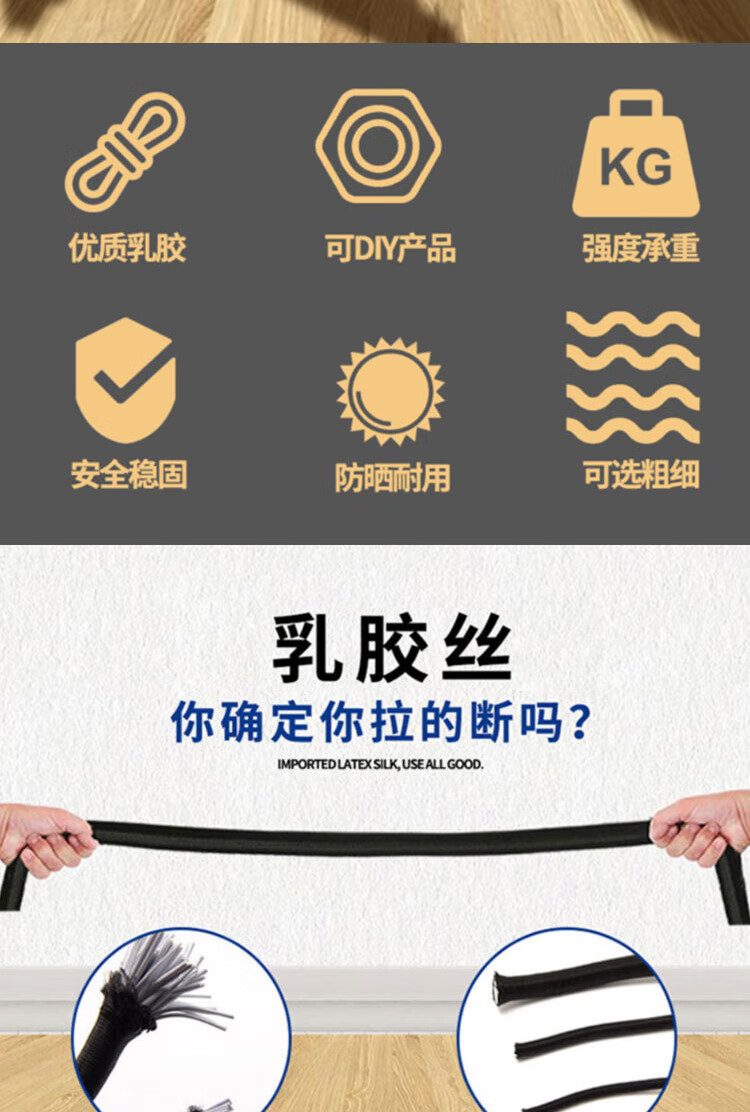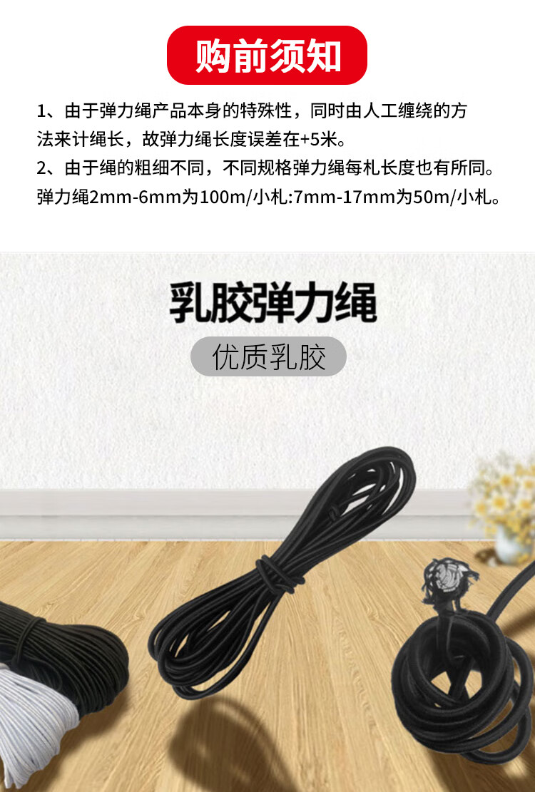 海斯迪克 乳胶弹力绳 KB100-5 黑色 直径6mm 100米 1卷