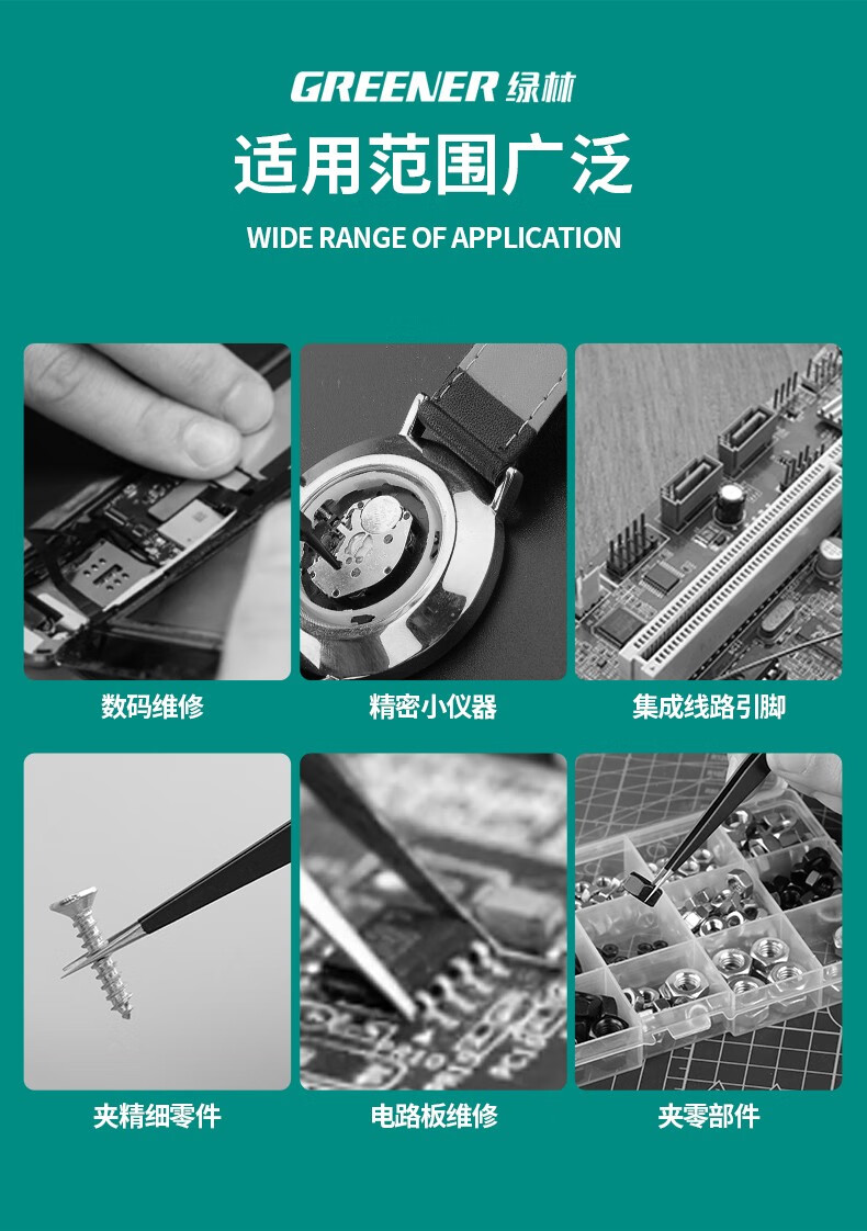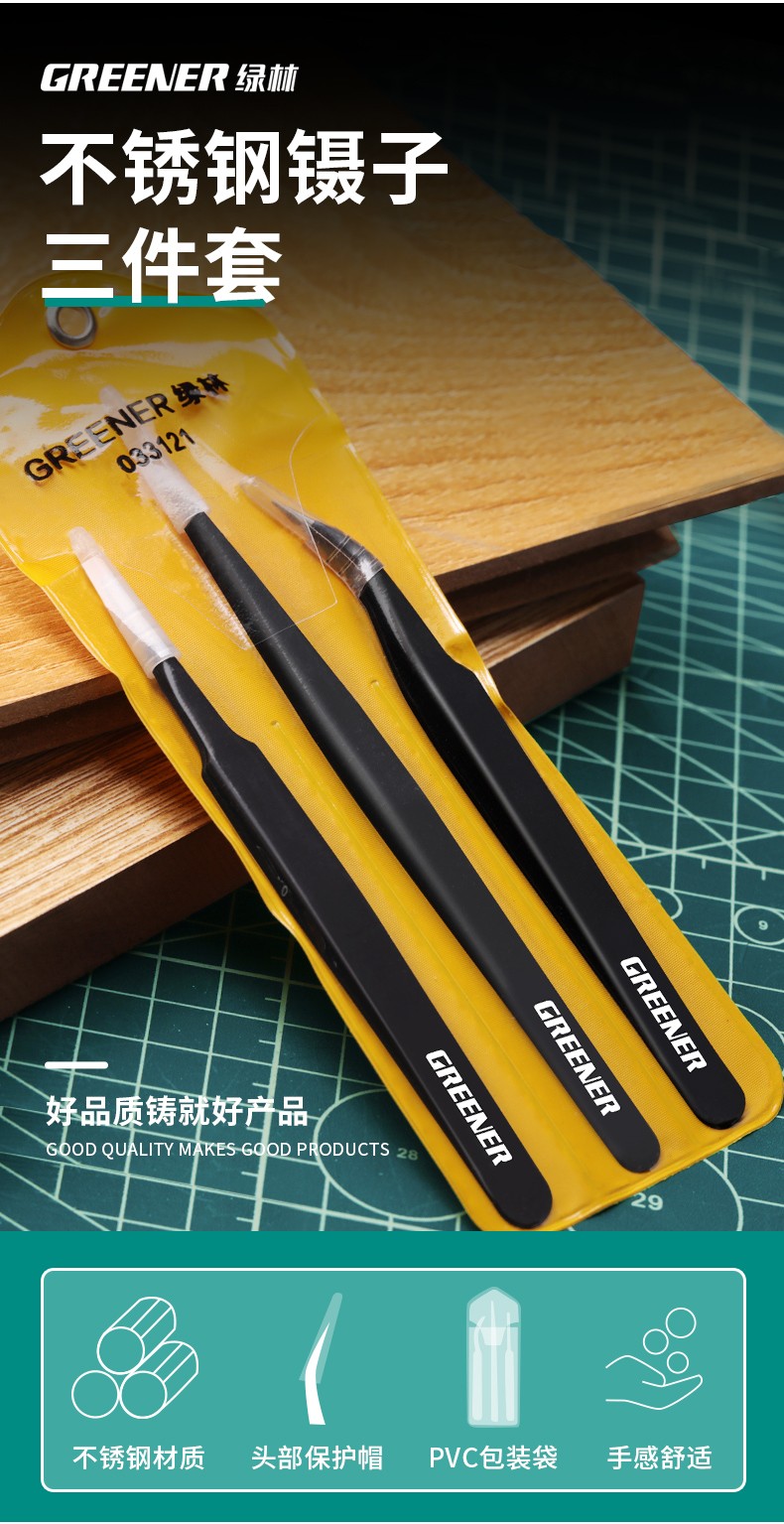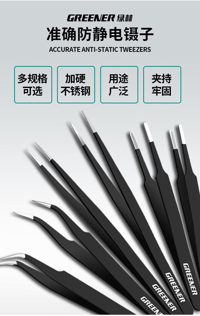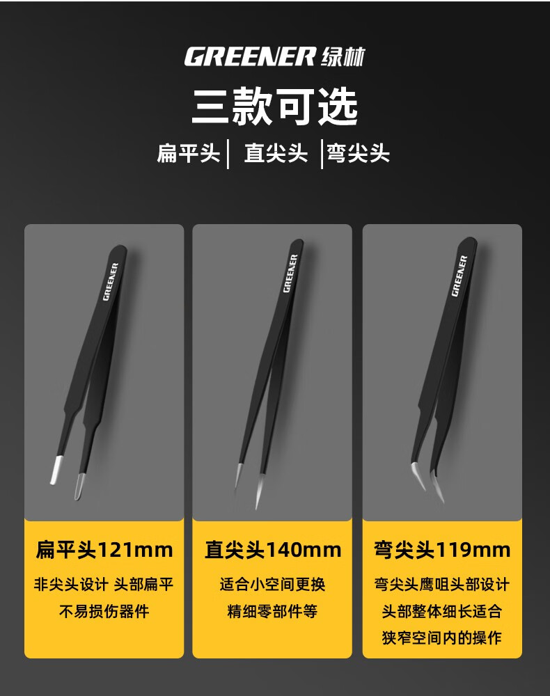 绿林 精密扁平头镊子 不锈钢 121mm 1把