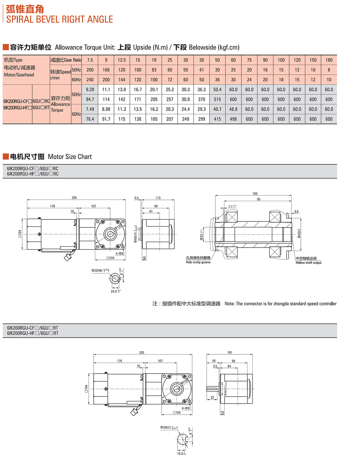中大力德 齿轮减速三相异步电动机 ZDN2200SZ 带减速机1:60 1个