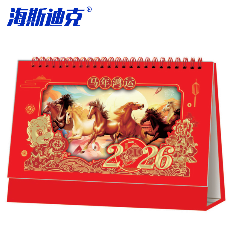 海斯迪克 精品喜庆浮雕荧光红艺术台历 HKWX33-4 马年鸿运 250*185mm 1个
