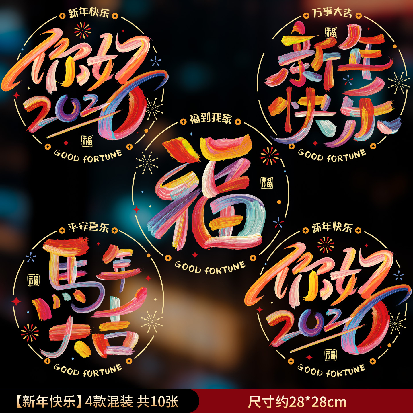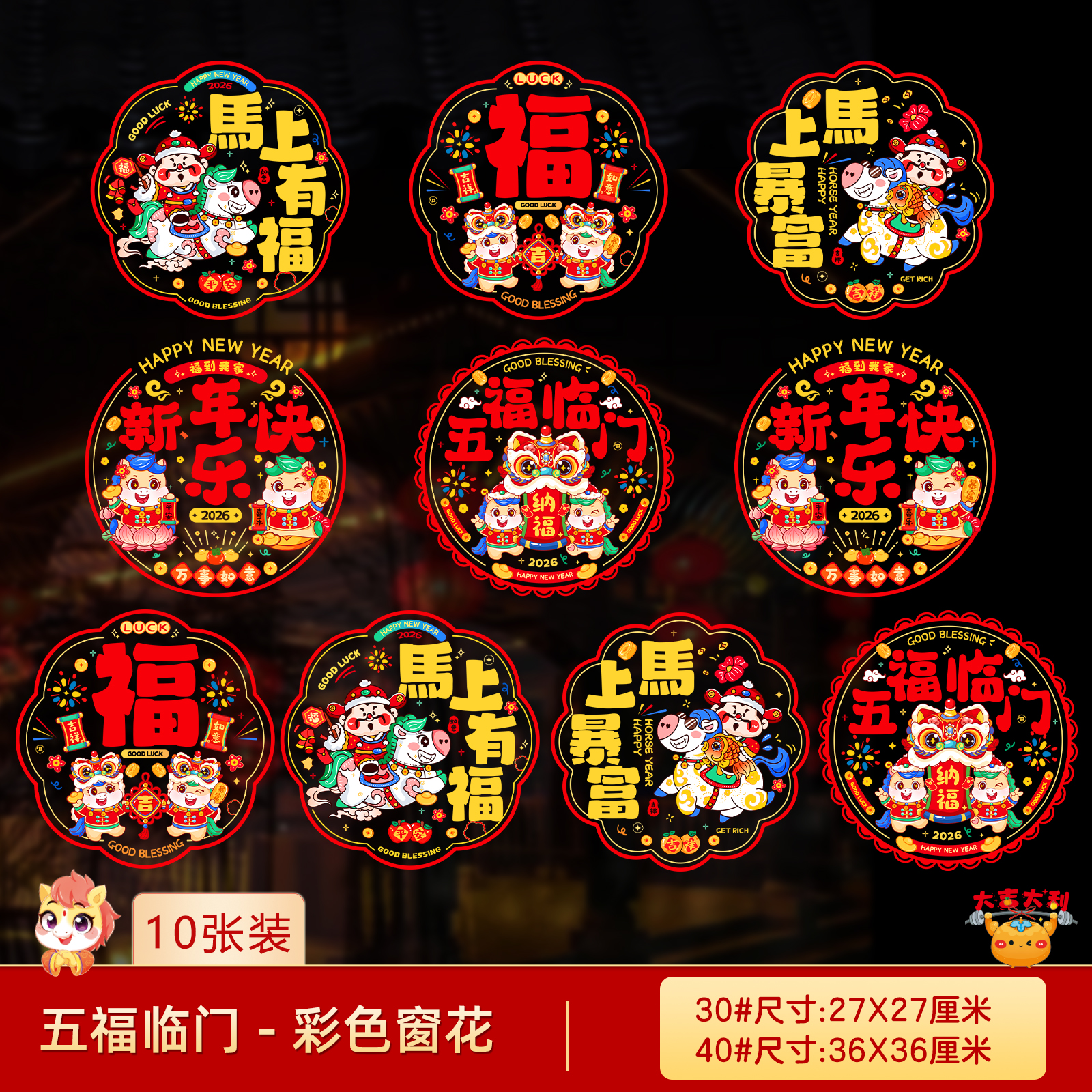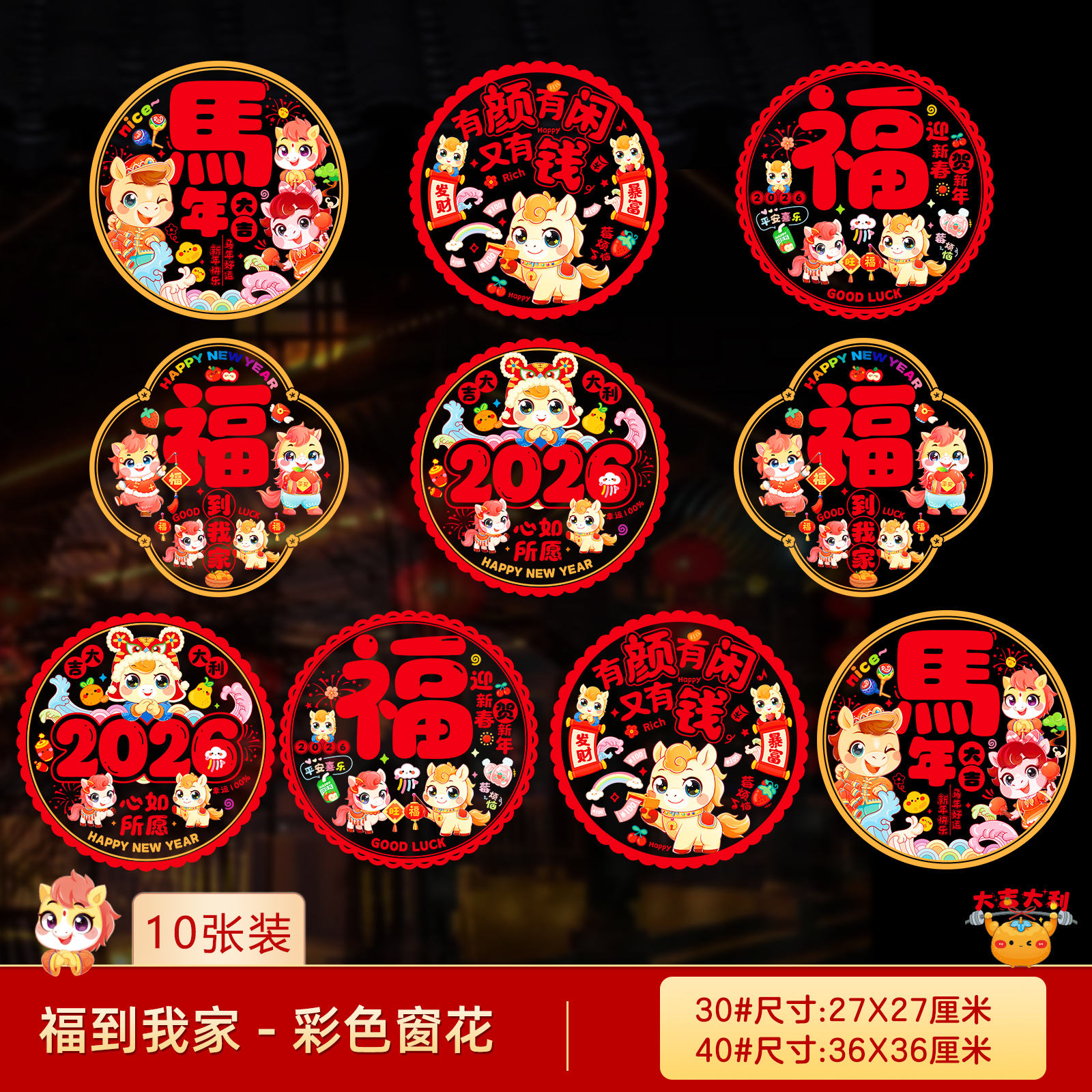 国产通用 2026马年福字窗贴 新年快乐马上有福 40# 直径34m 1套