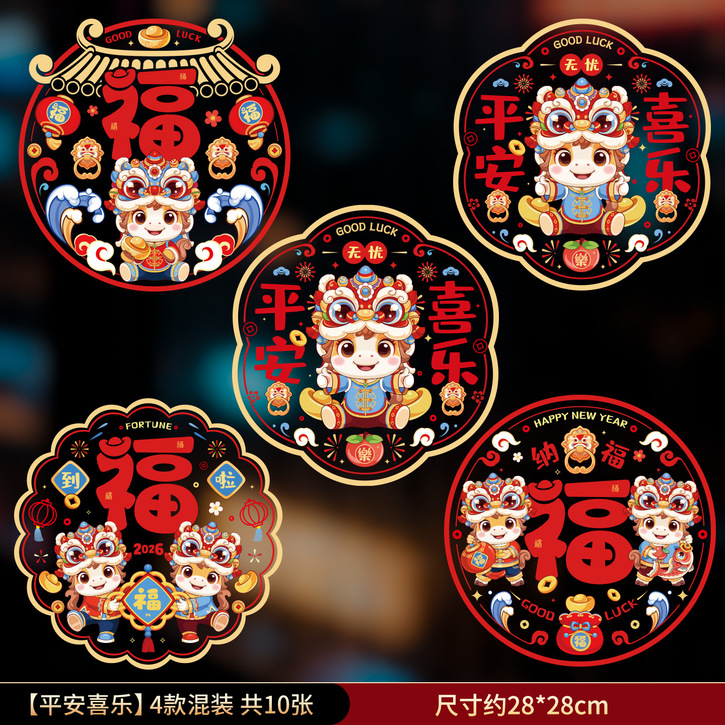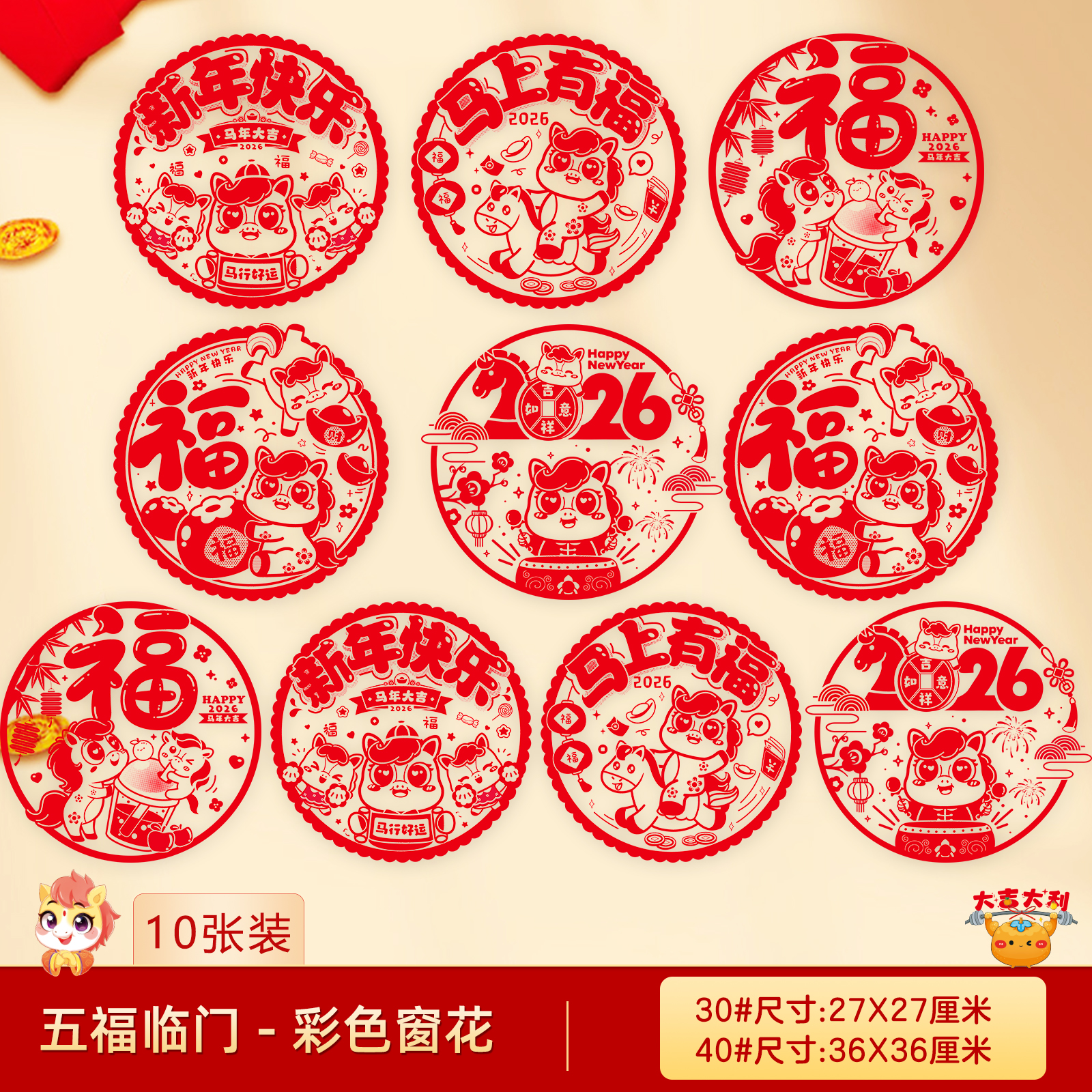国产通用 2026新款马年窗花 生肖福字-喜庆 30# 28cm 10张 1包