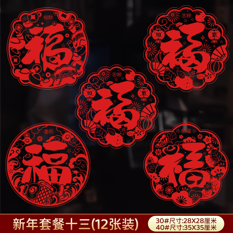 国产通用 2026新款马年窗花 花环福字-喜庆 30# 28cm 10张 1包