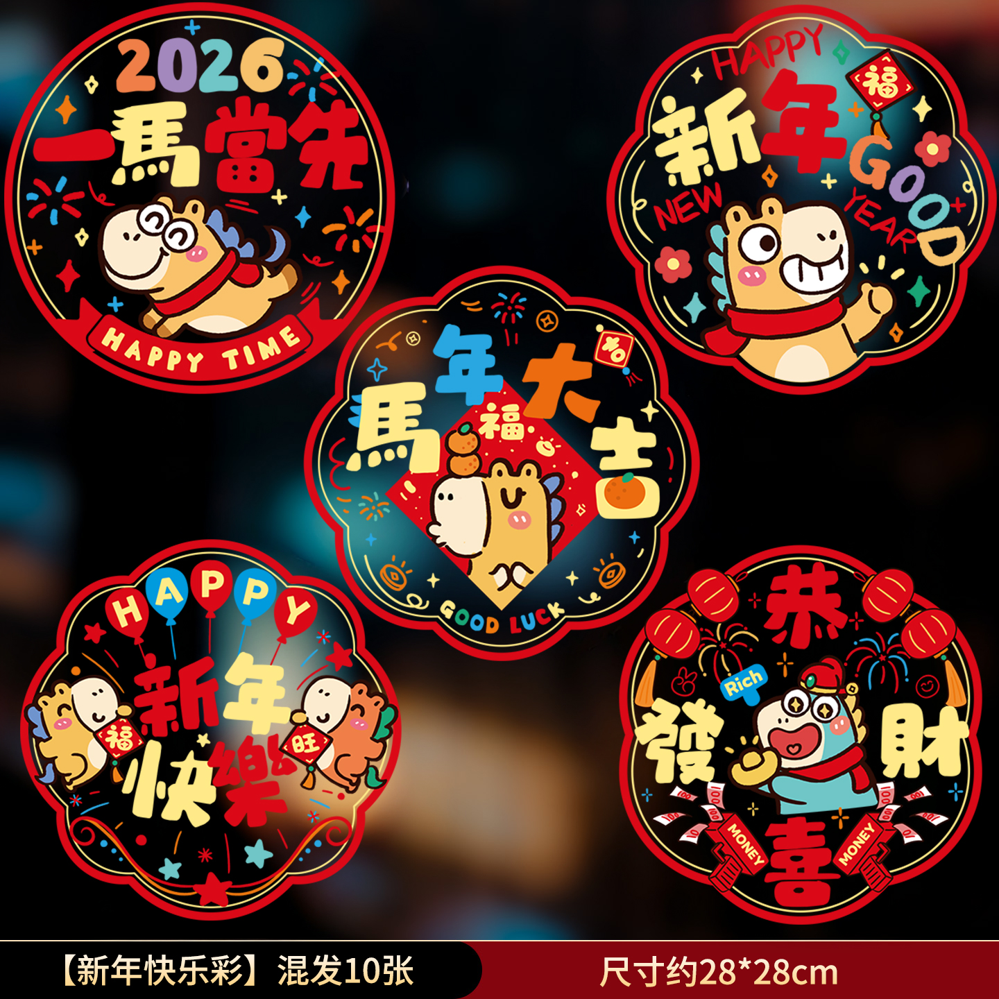 国产通用 2026新款马年窗花 新年快乐-多巴胺 30# 28cm 10张 1包