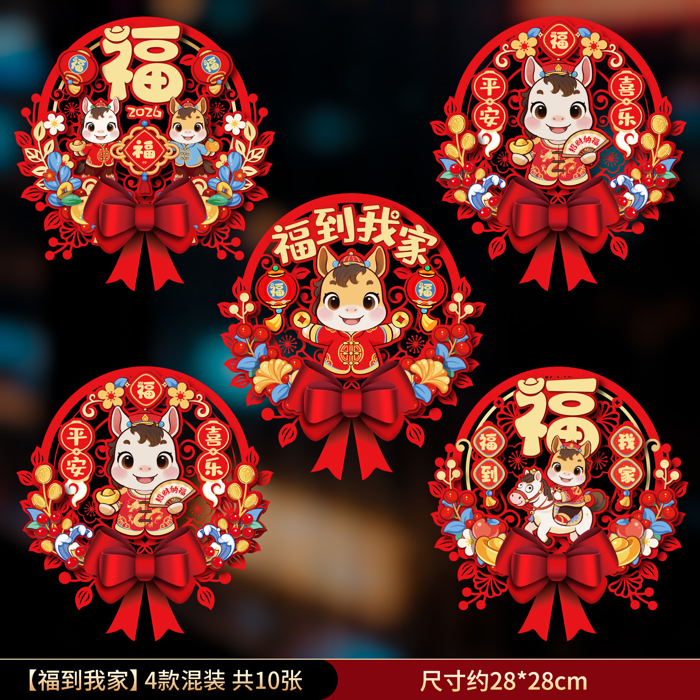 国产通用 2026马年福字窗贴 福到我家单色套装 30# 直径27cm 1套