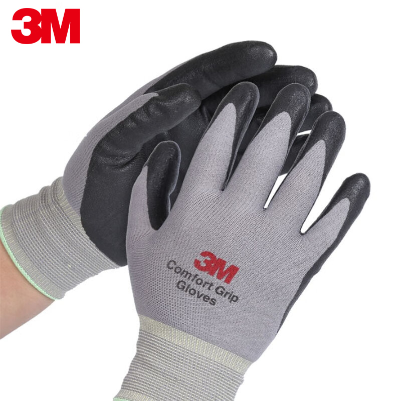 3M 防护手套舒适型防滑耐磨手套劳防手套丁腈掌浸手套灰色L高透气性 抗油污 耐磨防滑