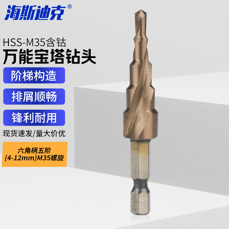 海斯迪克 万能宝塔钻头 HKCL-8 五阶 六角柄 M35螺旋 4-12mm 1个