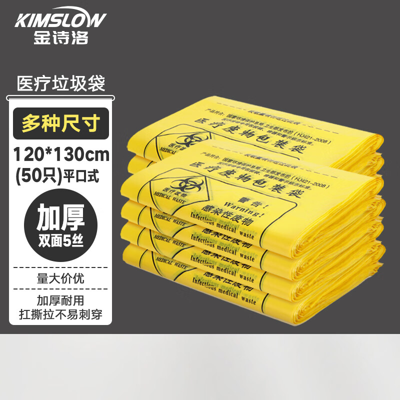 金诗洛 特厚款医疗垃圾袋 KSL158 平口120*130cm 50只 1件