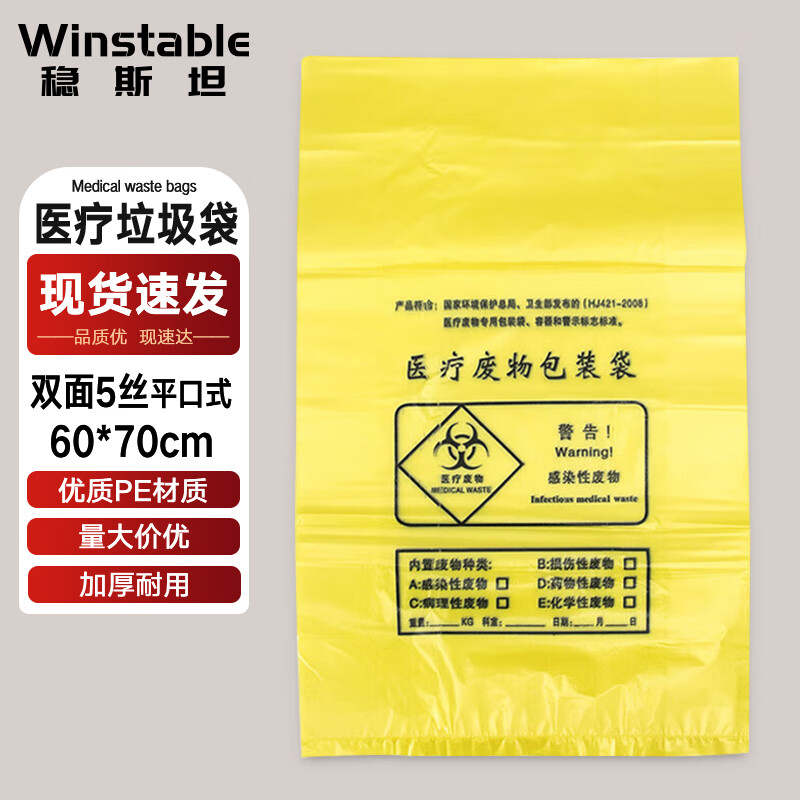 稳斯坦 加厚款医疗垃圾袋 WL-023 平口60*70cm 50只 1包