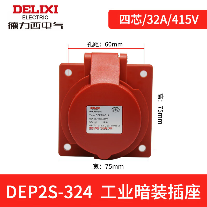 德力西电气 工业用暗装插座 DHADEP2S324R DEP2S-324 32A 4芯 415V 1个