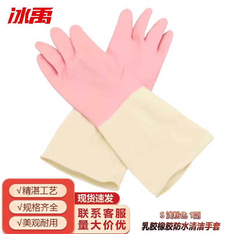 冰禹 橡胶手套 BH-80 浅粉色 S 1副