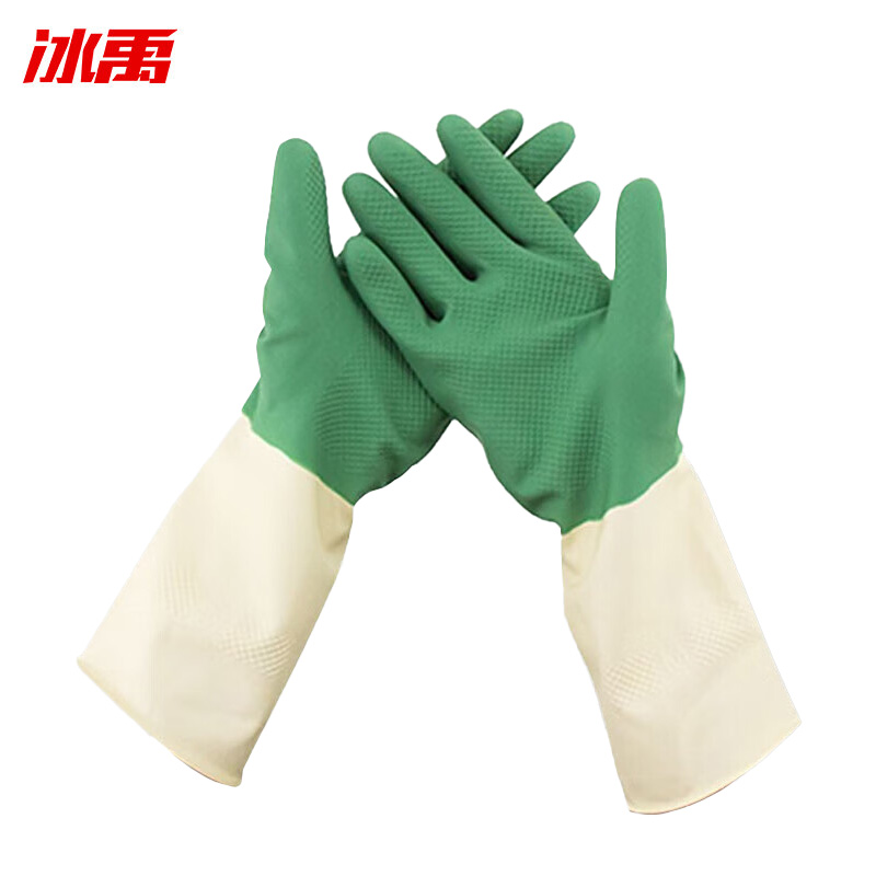冰禹 防水清洁手套 BYlj-174 乳胶 深绿 M 31cm 1双