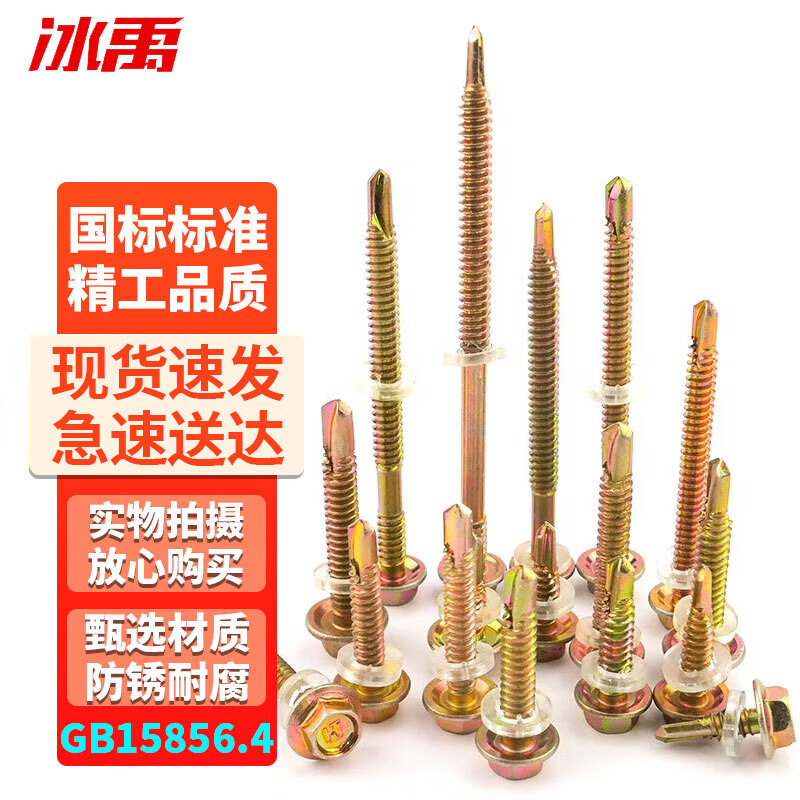 冰禹 外六角自攻自钻螺丝钉 BYsy-57 碳钢 彩锌 GB15856.4 全牙 5.5*35 1个