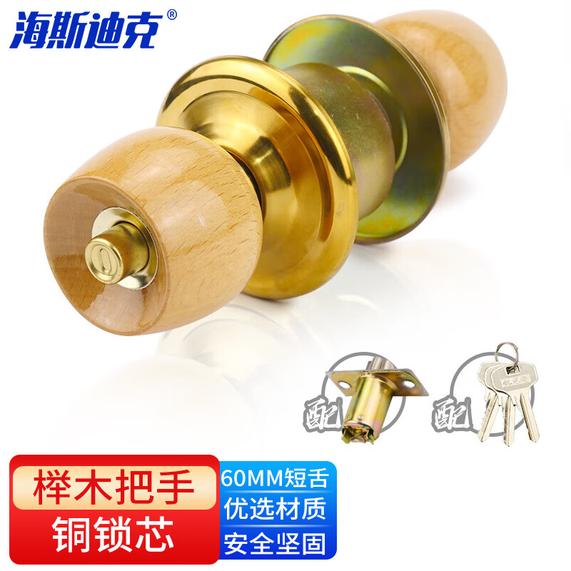 海斯迪克 球形锁 HKQL-38 榉木+铜芯 中心距70mm长舌 165*50mm 1个