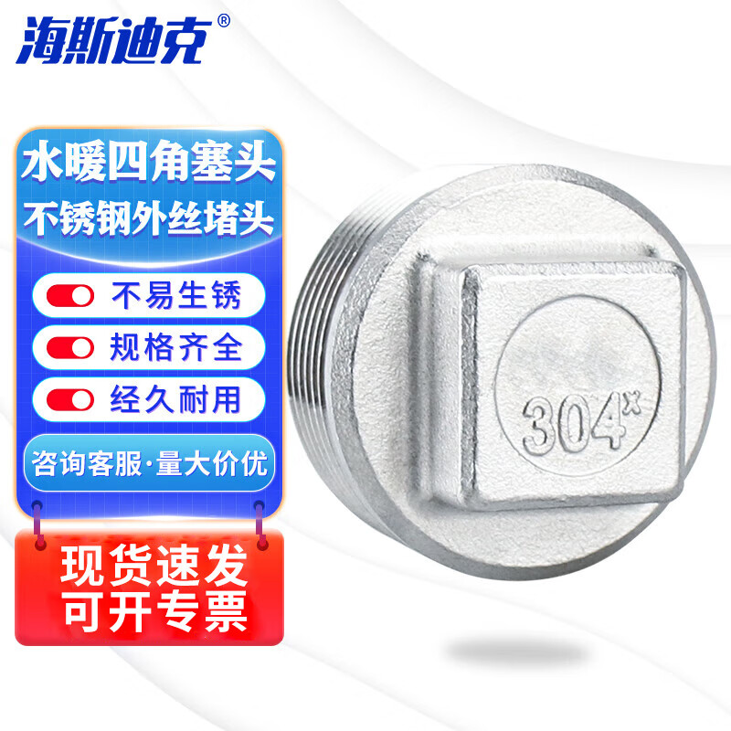 海斯迪克 四角塞头外丝管堵丝扣 HKDP-100 304不锈钢 DN15-1/2 1个