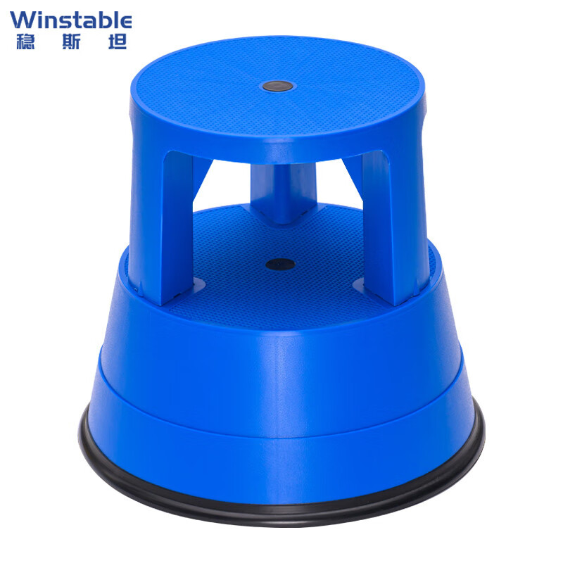 稳斯坦 塑料脚踏梯凳 W1021 蓝色 双层滚轮 1个