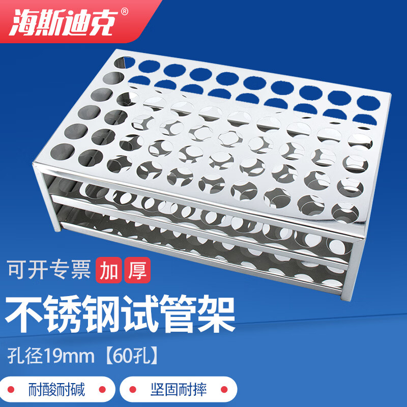海斯迪克 试管架圆孔离心管架 HKCL-905 不锈钢 孔径19mm 60孔 25*15.8*7.9cm 1个