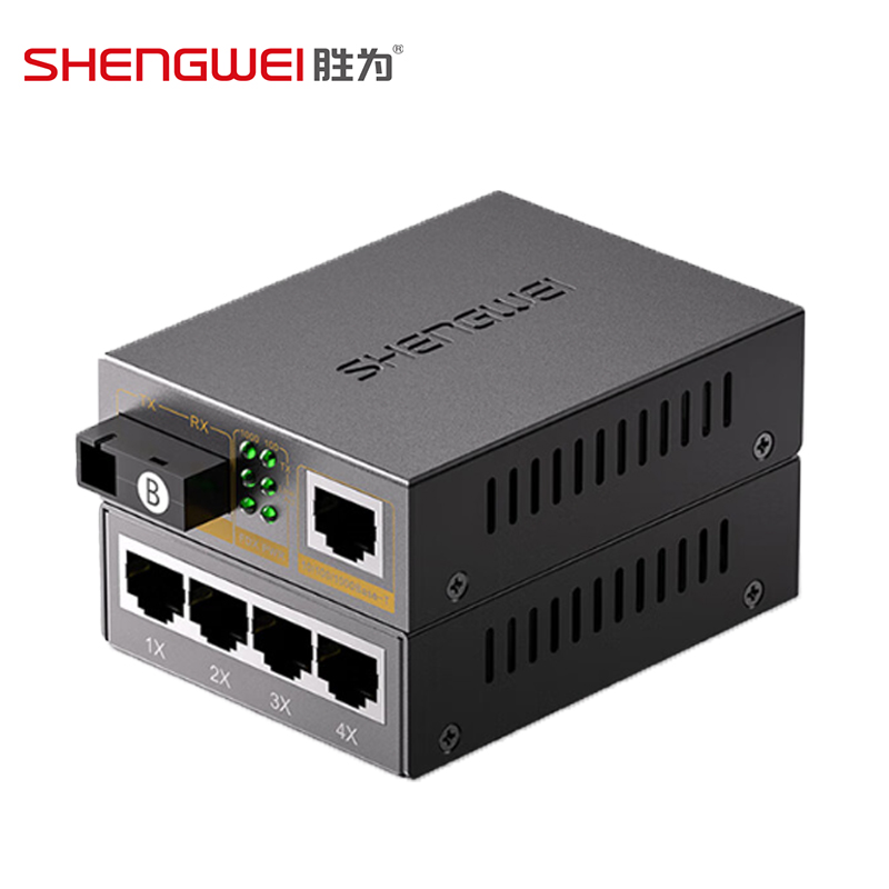 胜为 千兆迷你款一光四电光纤收发器 BGH214AB ≤20KM 单模单纤 1对