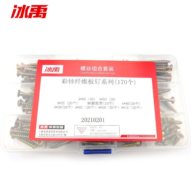 冰禹 膨胀螺丝钉套装 BYyc-59 碳钢 镀彩锌 全牙 国标 彩锌纤维板钉15格套装 1套