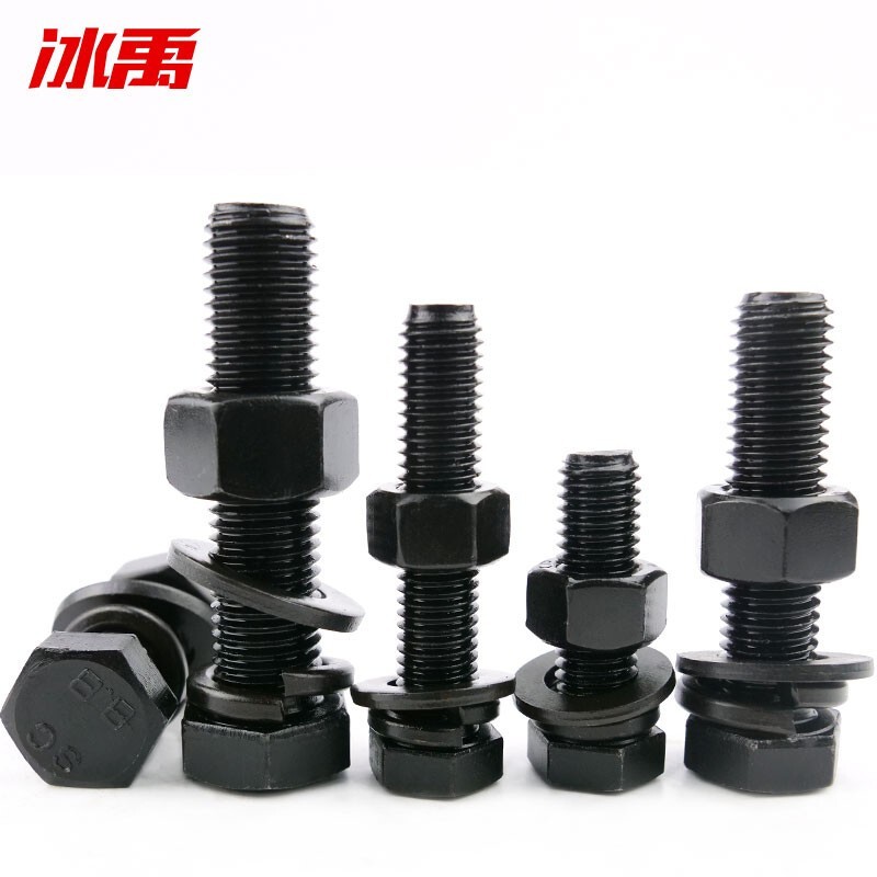 冰禹 外六角螺丝螺母平弹垫四组合 BYlj-342 碳钢 M8*45 发黑(淬火) 8.8级 GB5783 50套 1包