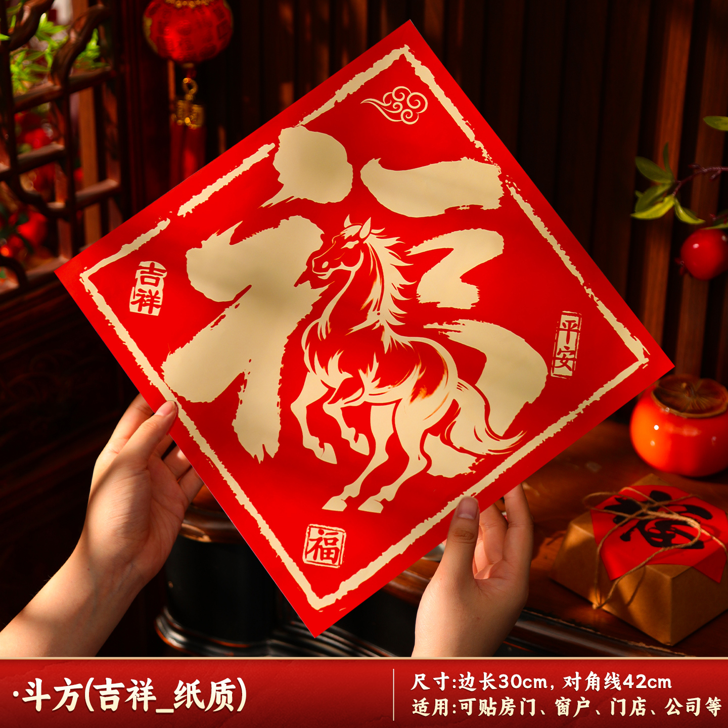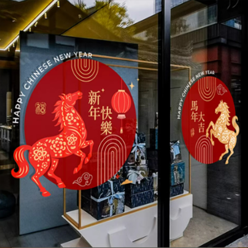 国产通用 2026新年生肖马窗花贴 大号60*58CM 1对