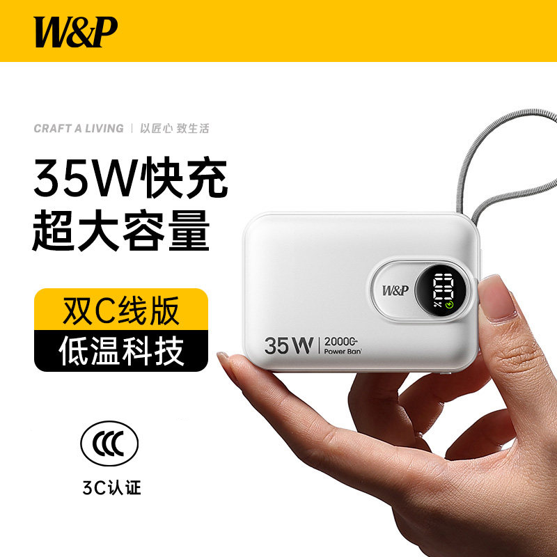 W&P 便携充电宝 典雅白升级35W功率 | 双线【Type-C+Type-C】 1个