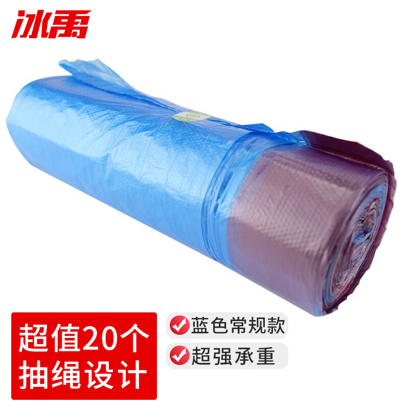 冰禹 手提式收口清洁袋 BYyc-353 穿绳式垃圾袋 蓝色单卷 20只 1卷