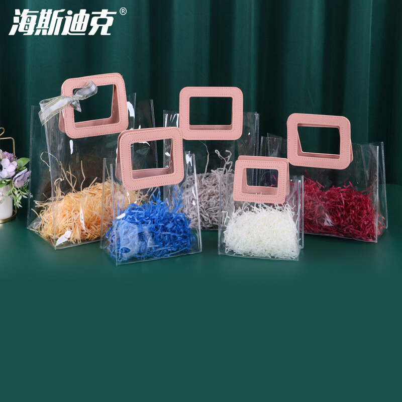 海斯迪克 透明pvc手提袋 HKL-1123 (红色)25*28*14.5cm竖版 1个